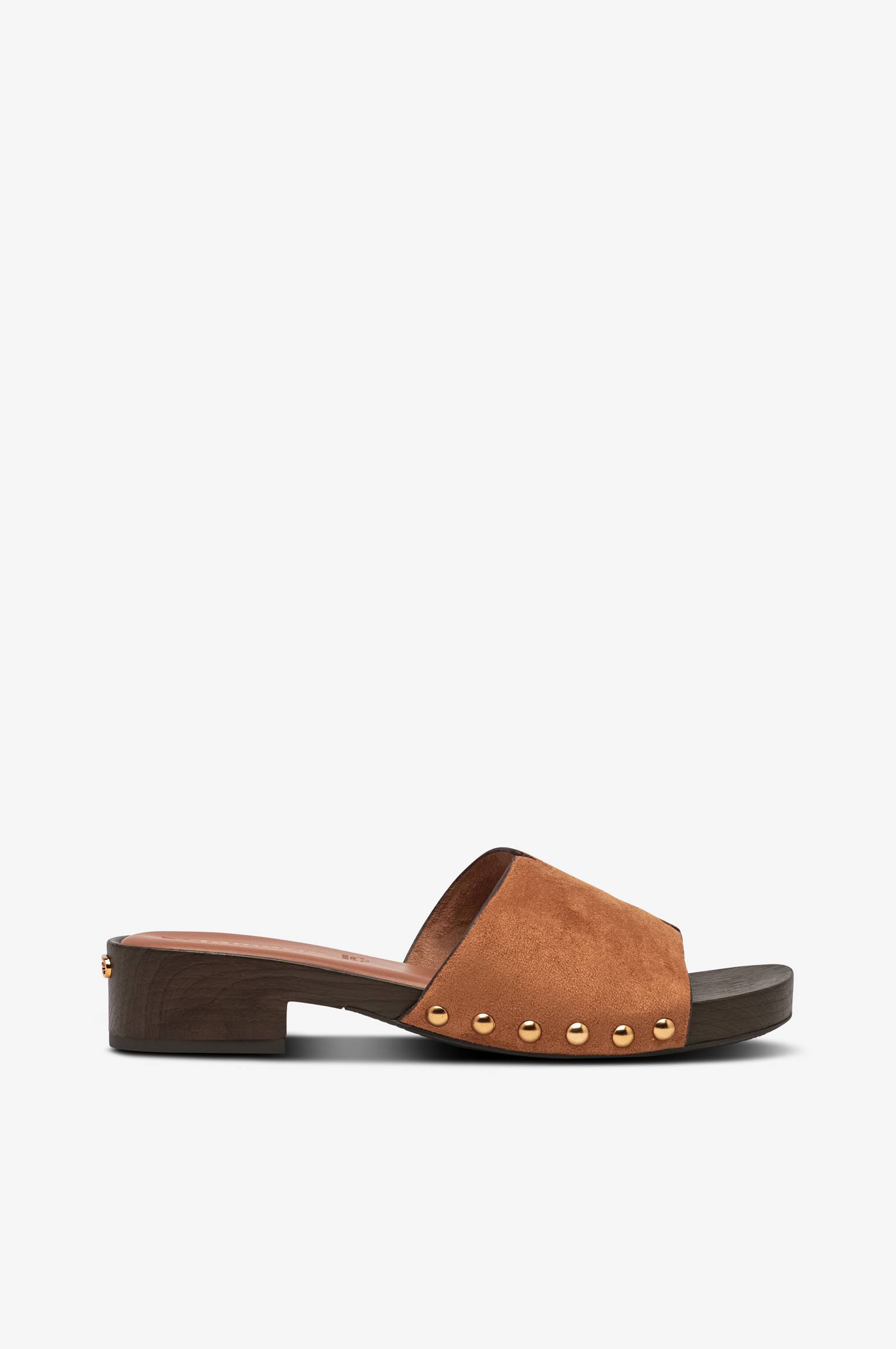 • Leveä hihna mokkanahkasta jalan yläpuolella• Pehmeästi vuorattu, nahkapäällysteinen pohjallinen• Ulkopohja tekokuidusta puinen ulkonäöllä