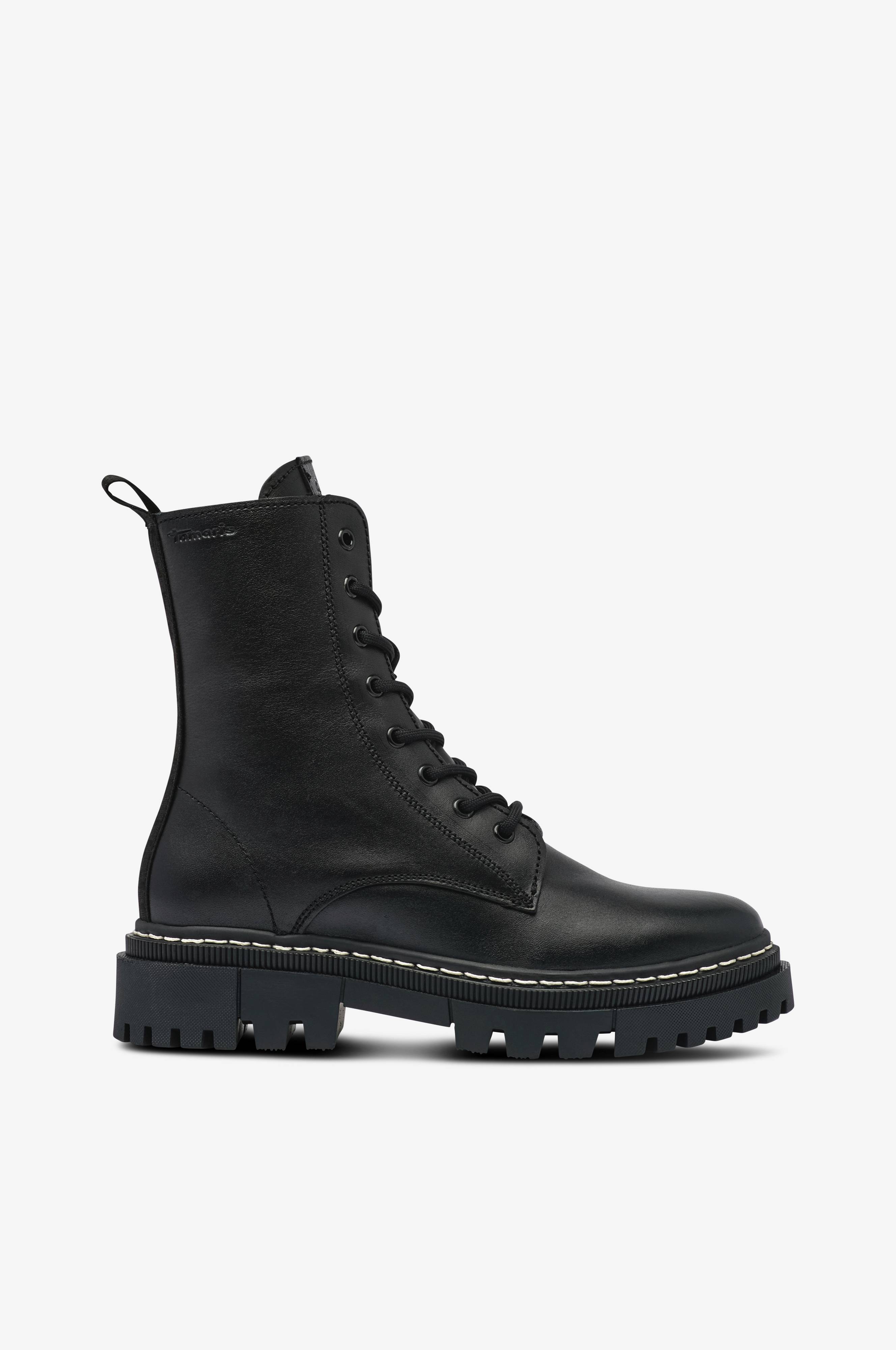 • Vuoratut varsikengät nahasta• Nyöritys edessä• Vetoketju varren sisäpuolella• Tekstiilivuori• Karkeakuvioinen ulkopohja• Varren korkeus: 16 cm koossa 37• Koron korkeus: 3,5 cm