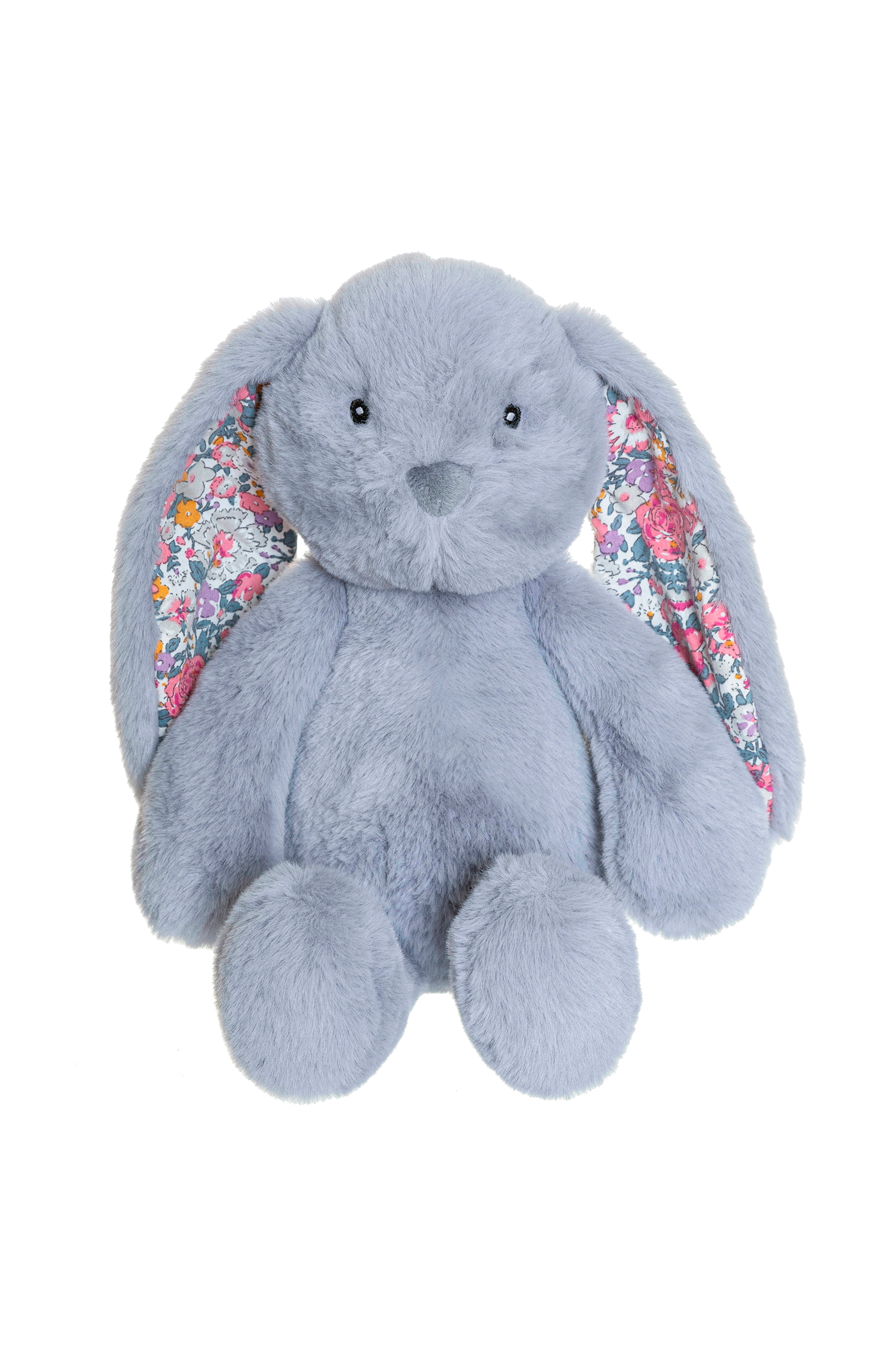 Pupu, jolla on pehmeä sininen turkki ja kukallinen kangas korvien sisäpuolella.Lisäksi sillä on isot sädehtivät silmät ja kiiltävä nenä.
