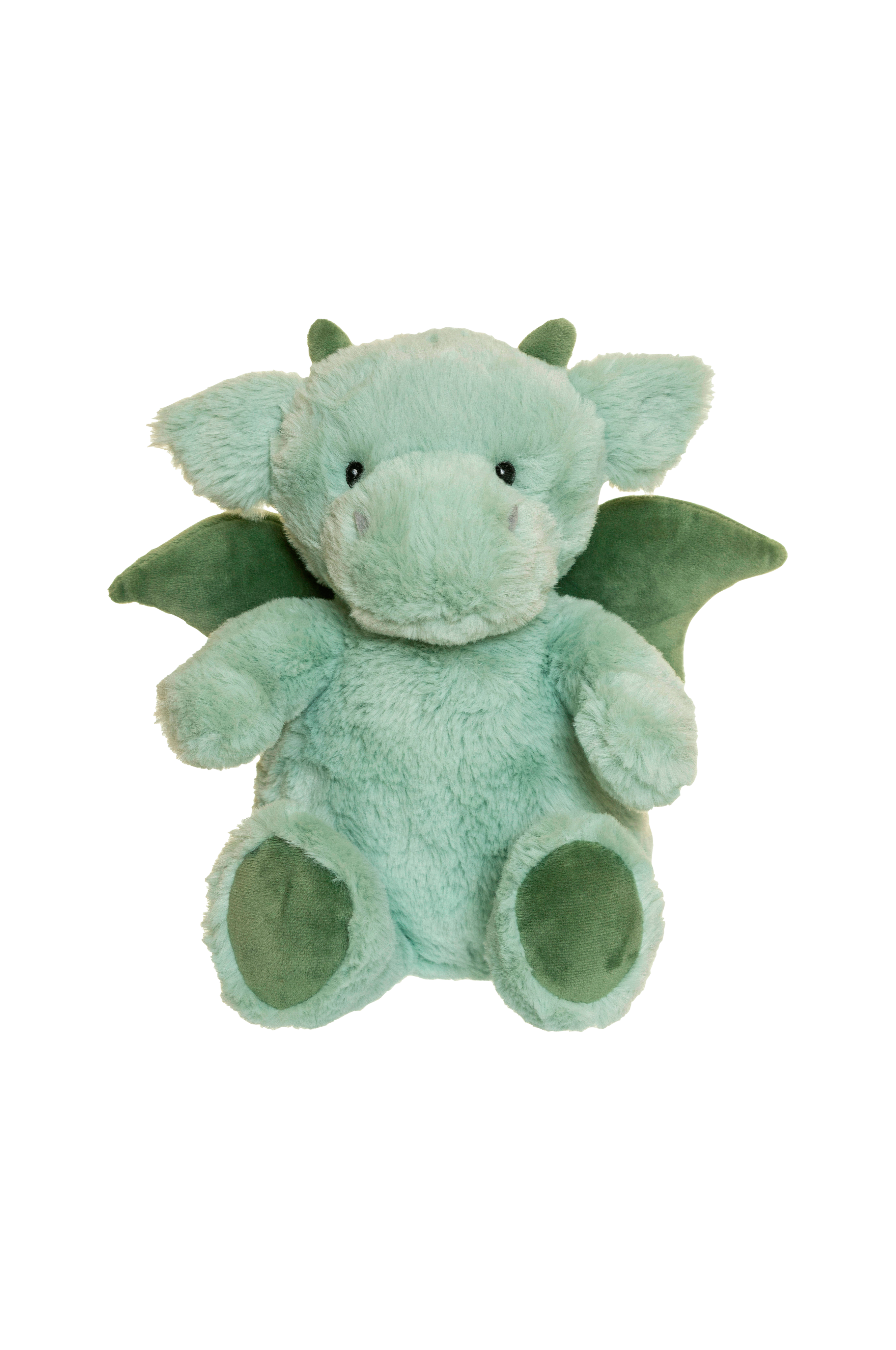 Hieno dinosaurus, jolla on vaaleanvihreä turkki sekä vihreät sarvet ja siivet - hauska leikeissä ja pehmeä halittava.