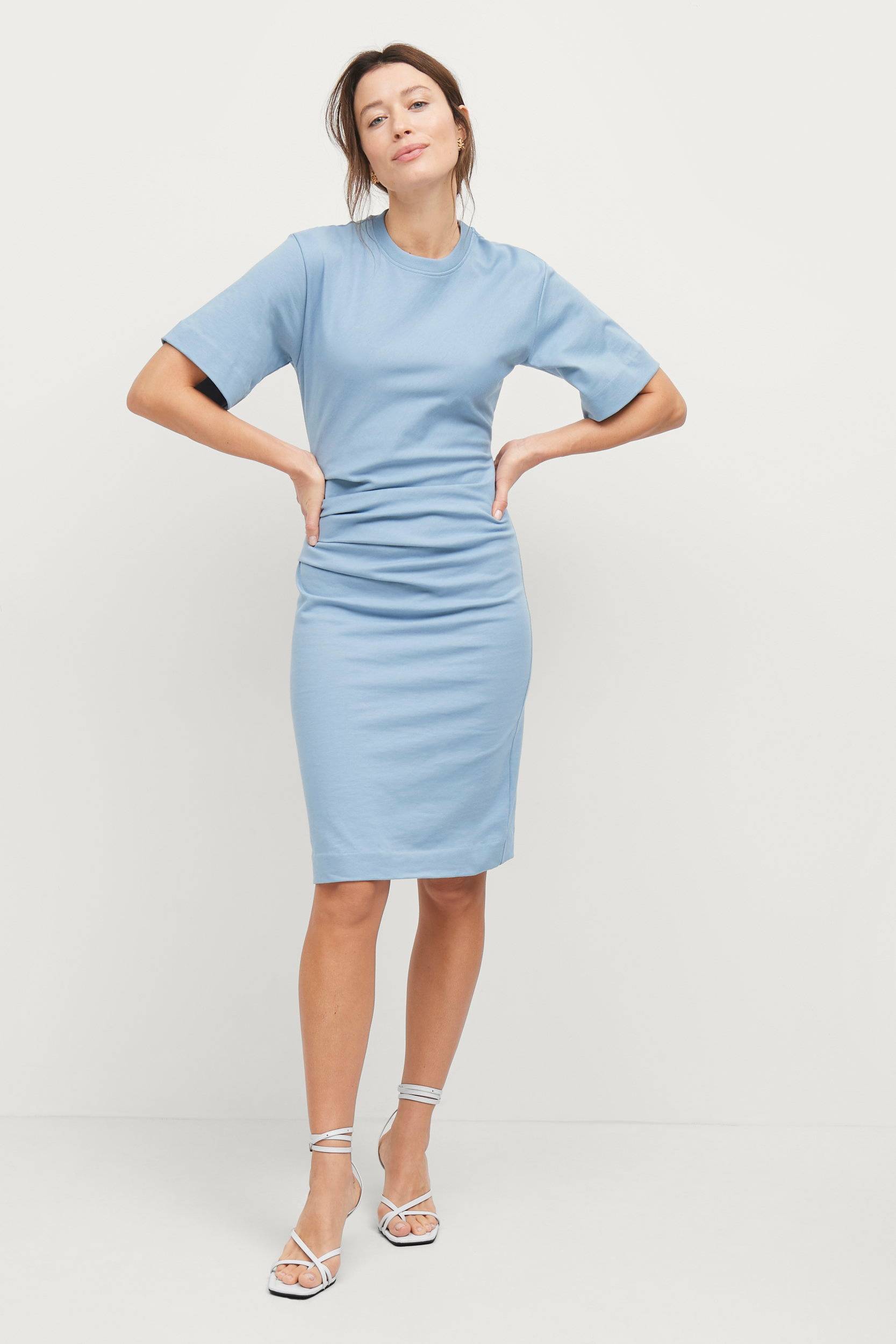 • Valmistettu puuvillajersey-kankaasta• Kapea istuvuus• Pyöreä, ribattu kaula• Pudotetut olkapäät• Leveä, lyhyt hiha• Poimutetut yksityiskohdat toisella puolella• Pituus: 104 cm koossa S