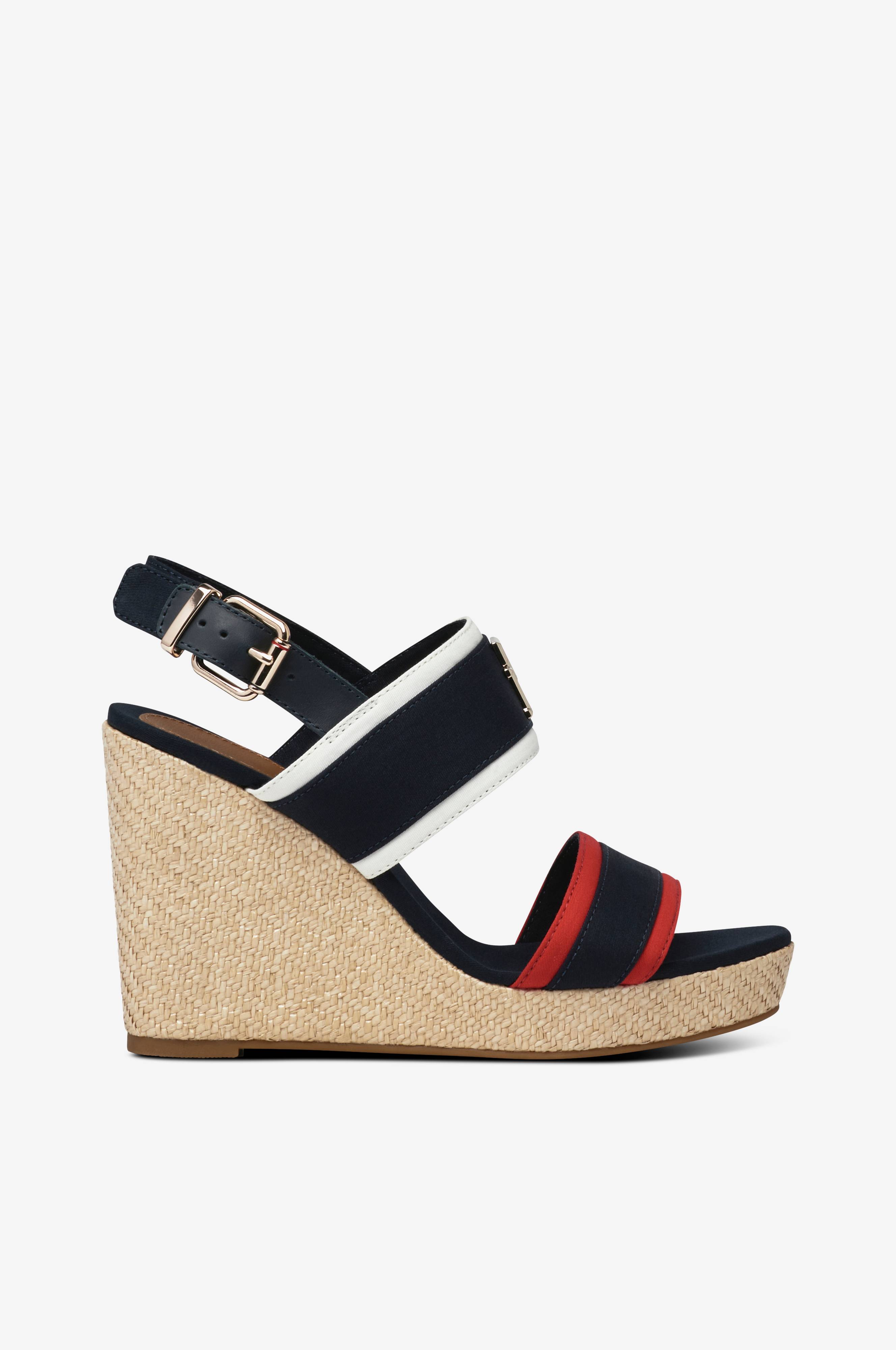 • Korkea, köydellä peitetty kiilakorko• Hihnat tekstiilistä• Metallilogo• Solki nilkassa• Koron korkeus: 10 cm