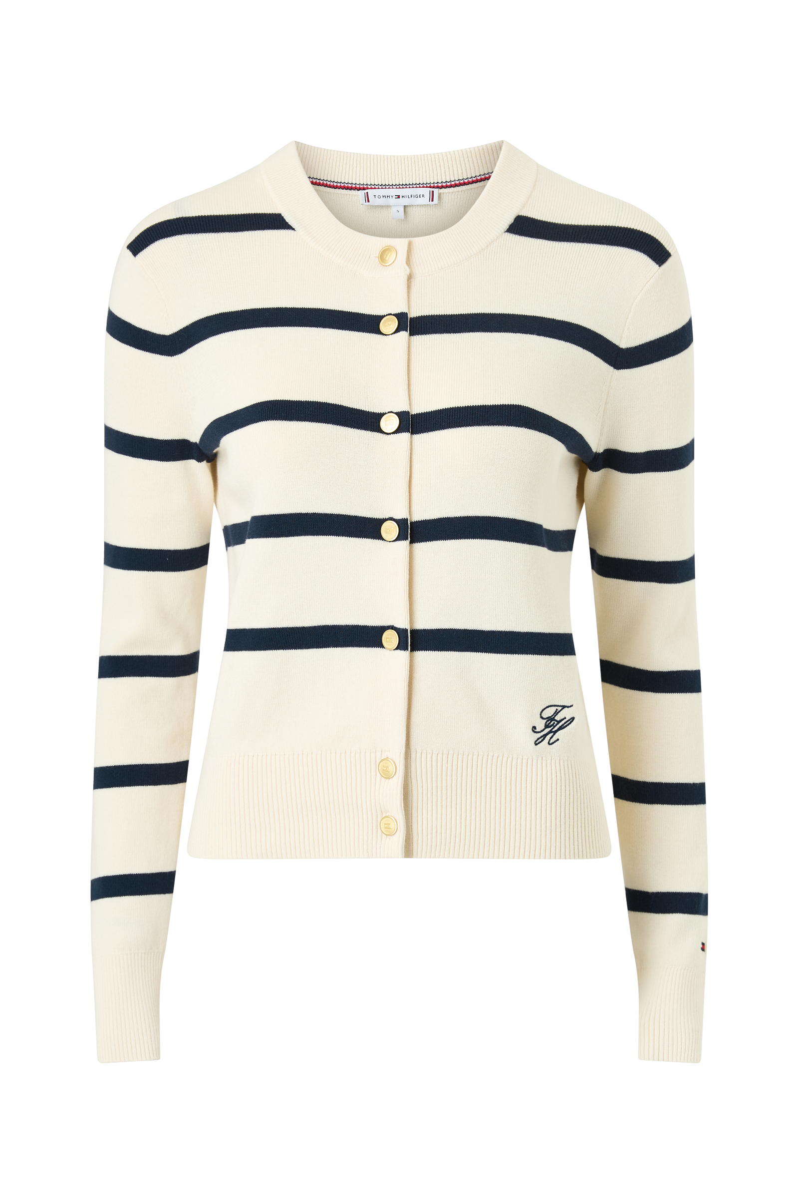 • Raidallinen neuletakki• Kullanväriset napit• Ribbineulos hihansuissa ja alhaalla