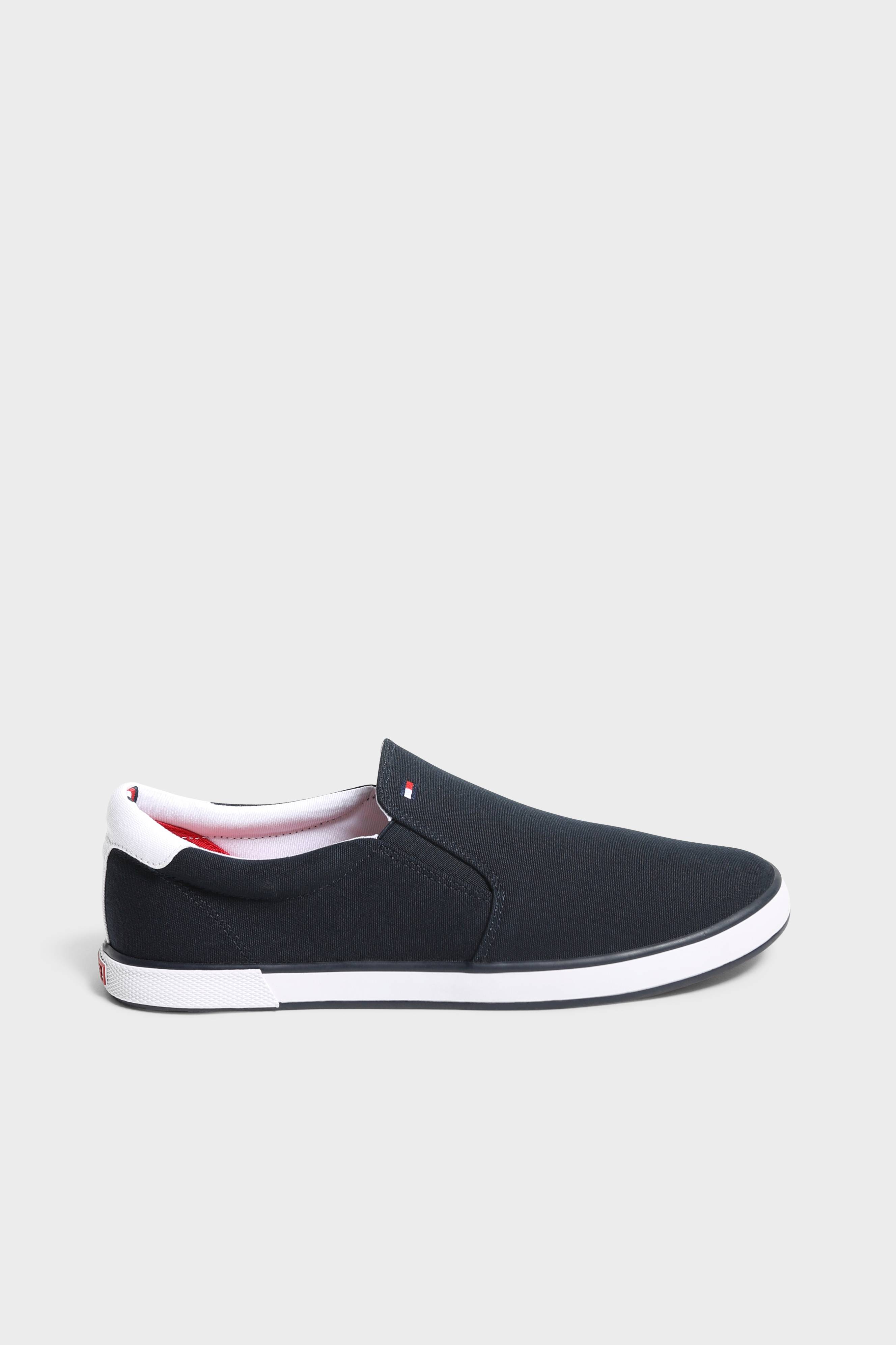 Slip on -tennarit puuvillakanvaasia. Venykkeet edessä. Pieni kirjailtu logo edessä. Pintakuvioitu logo takana pohjan reunassa.