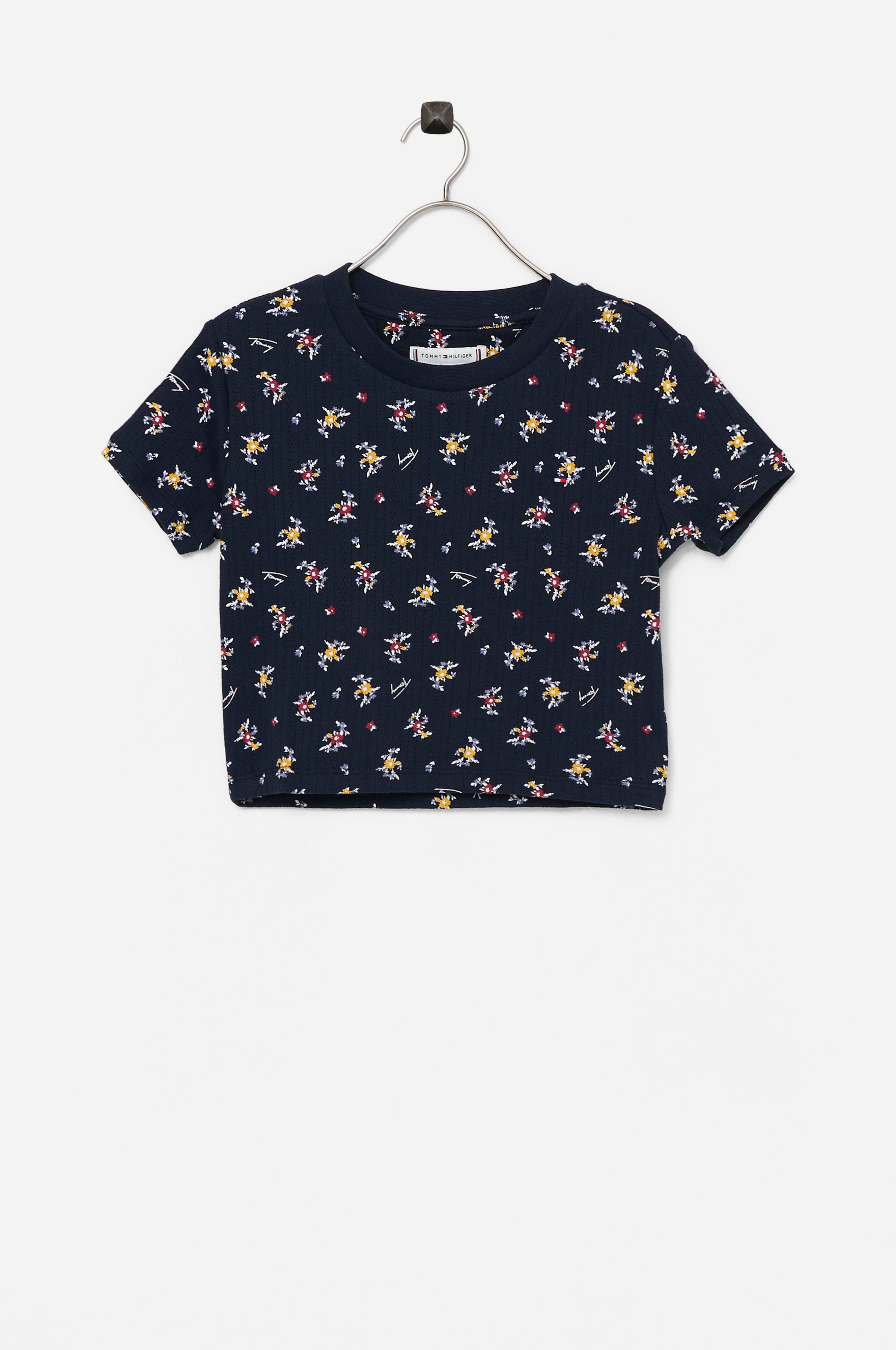 • Lyhyt hiha • Veneen muotoinen kaula-aukko • Ribattu trikoo reikäkuvioinnilla • Painettu kukkakuvio • Tuote sisältää ekologista puuvillaa, joka on viljelty ilman kemiallisia torjunta-aineita, keinotekoisia lannoitteita ja geenimuuntelua (GMO). Se luo terveellisemmän työympäristön viljelijöille ja on hyväksi maaperälle.