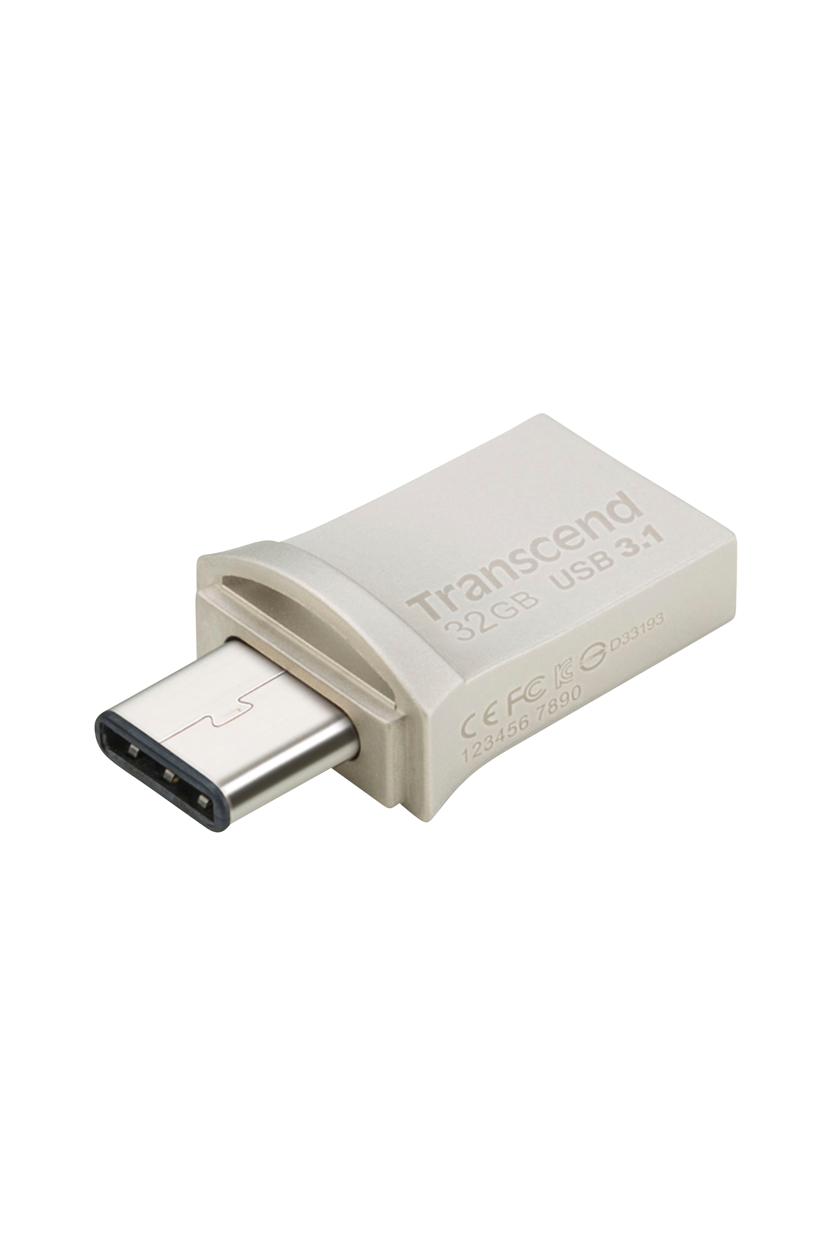 JetFlash 890 USB 3.1 OTG Flash Drive, jossa kaksoisliitin USB Type-C-liitin ja tavallinen USB 3.1. -liitin jonka avulla siirrät ja varmuuskopioit valokuvat, musiikin ja videot uudella USB Type-C -portilla varustettujen yksiköiden kuten MacBookin ja tietokoneen, kannettavan tietokoneen ja Mac-tietokoneen välillä. lataa Transcend Elite App -sovellus ja tutustu JetFlash 890 -tiedostoihisi sekä tallena ne MacBookille