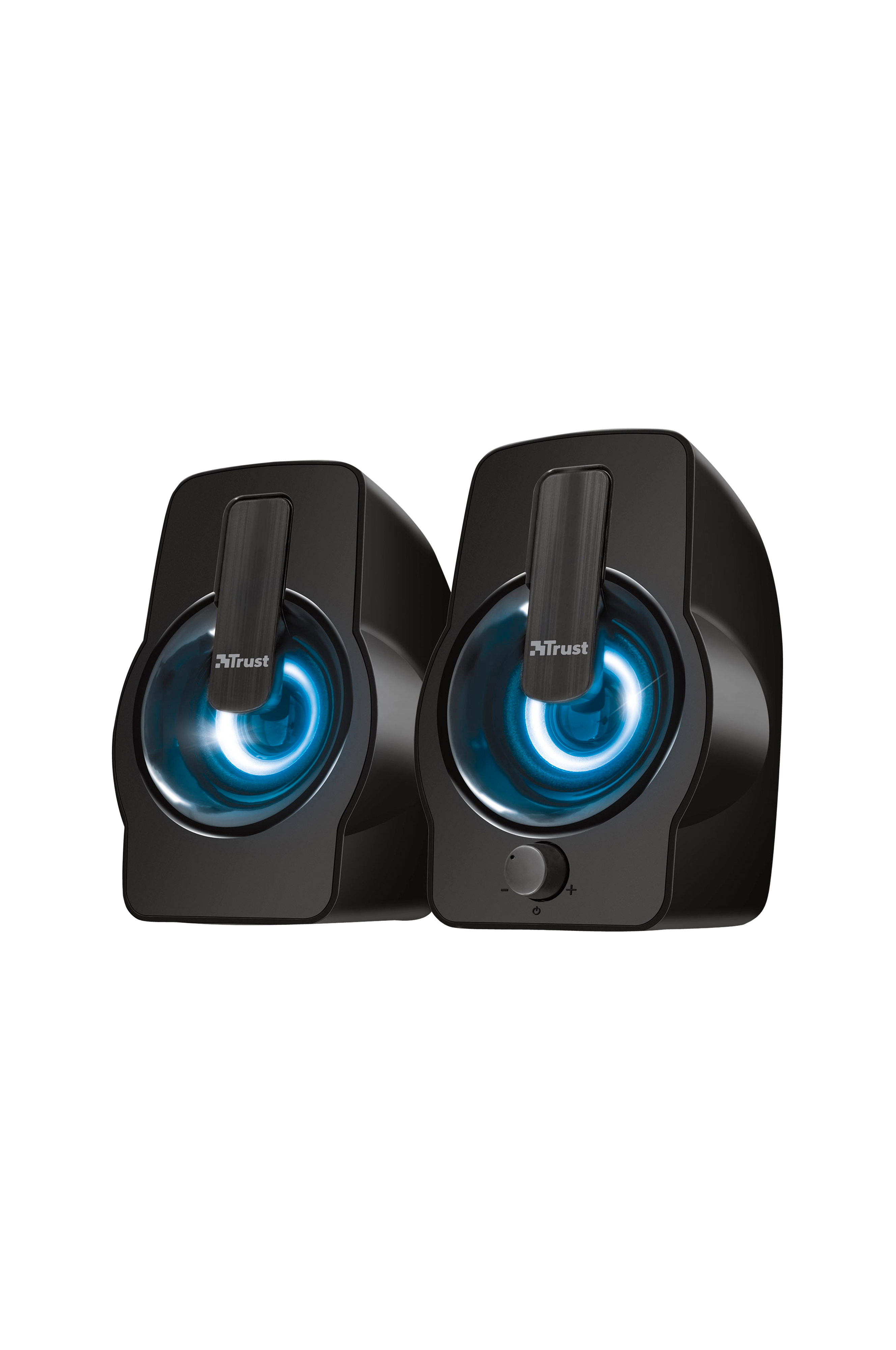 Kompaktin kokoiset Gemi RGB LED-valaistut kaiuttimet täydentävät kotiasi tai toimistoasi. 12 W maksimitehon (6 W RMS) ansiosta voit nauttia elokuvista, peliäänistä ja suosikkimusiikistasi tietokoneeltasi. Ne tuottavat selkeän äänen ja vievät samalla vain vähän pöytätilaa.