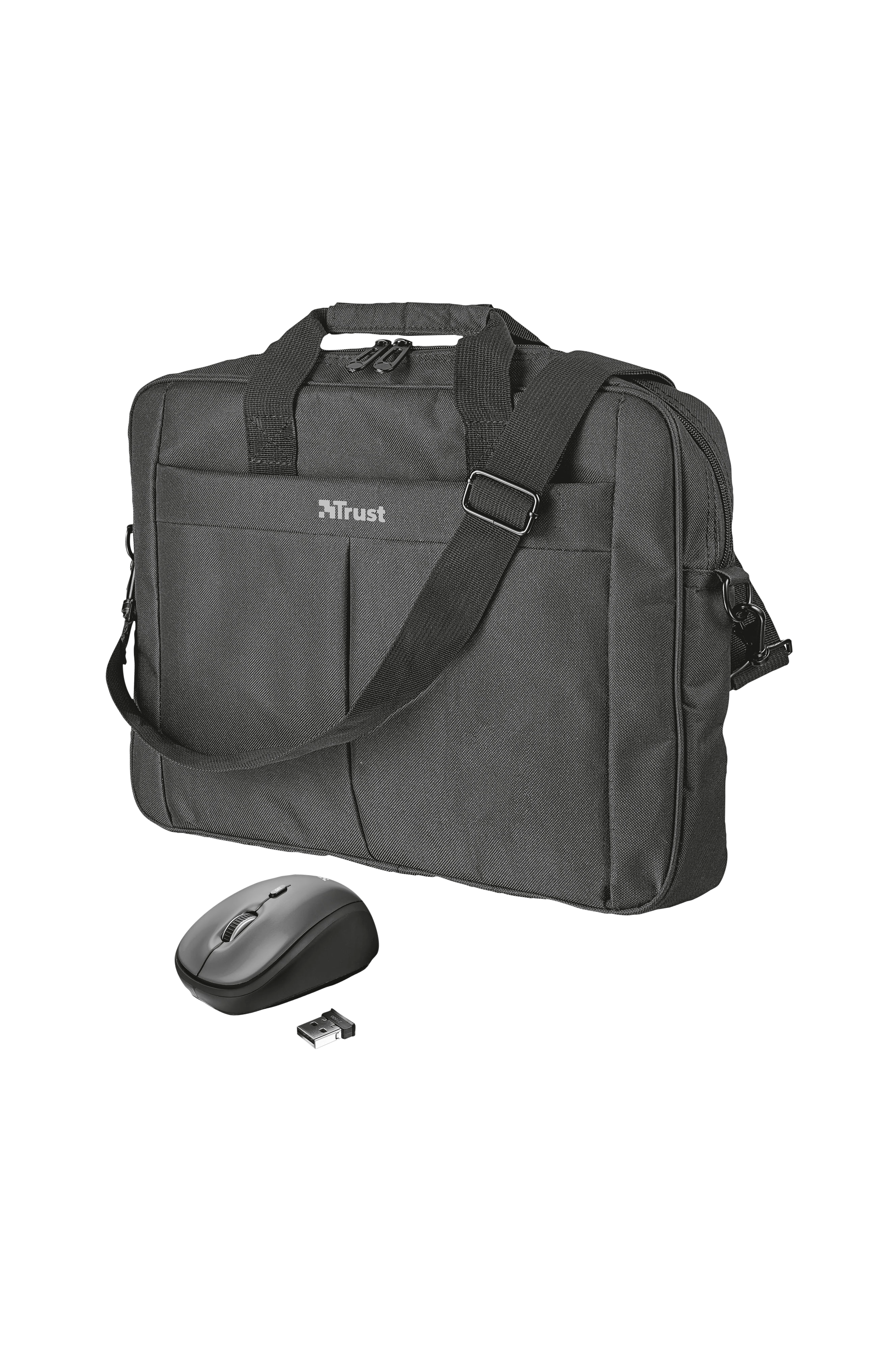 Kätevä matkasetti, joka sisältää langattoman hiiren ja laukun enintään 16 tuuman kannettavalle tietokoneelle, oheislaitteille ja muille lisätarvikkeille.