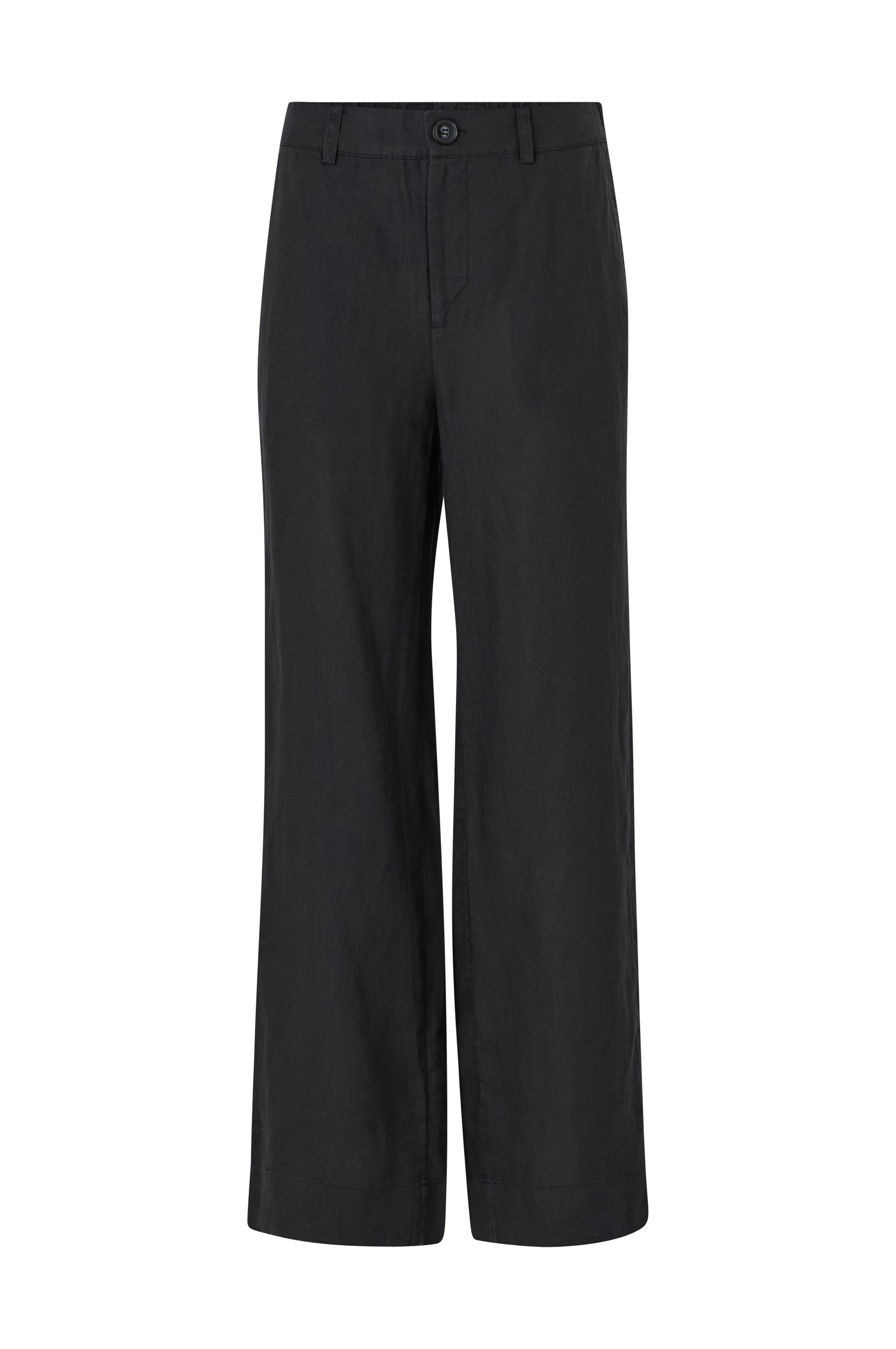 • Malli leveillä, suorilla jaloilla• Korkea vyötärö silmukoilla edessä ja kuminauhalla takaosa• Upotetut sivutaskut• Lahkeen sisäpituus: 86 cm koossa 36
