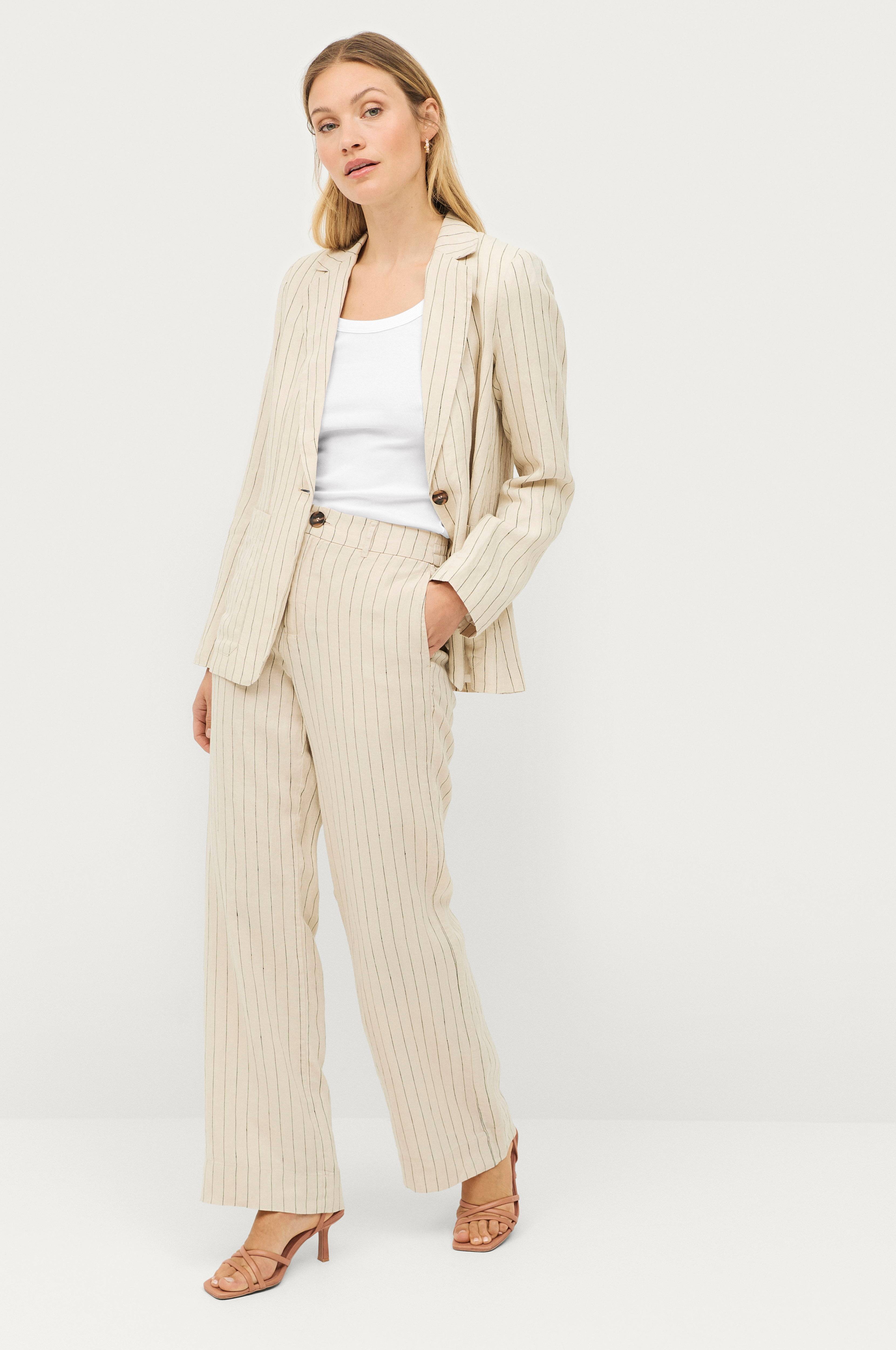 • Housut pellavalaadusta• Kuminauha vyötärön takaosassa• Silmukat• Nappikiinnitys• Vetoketjusepalus• Sivutaskut