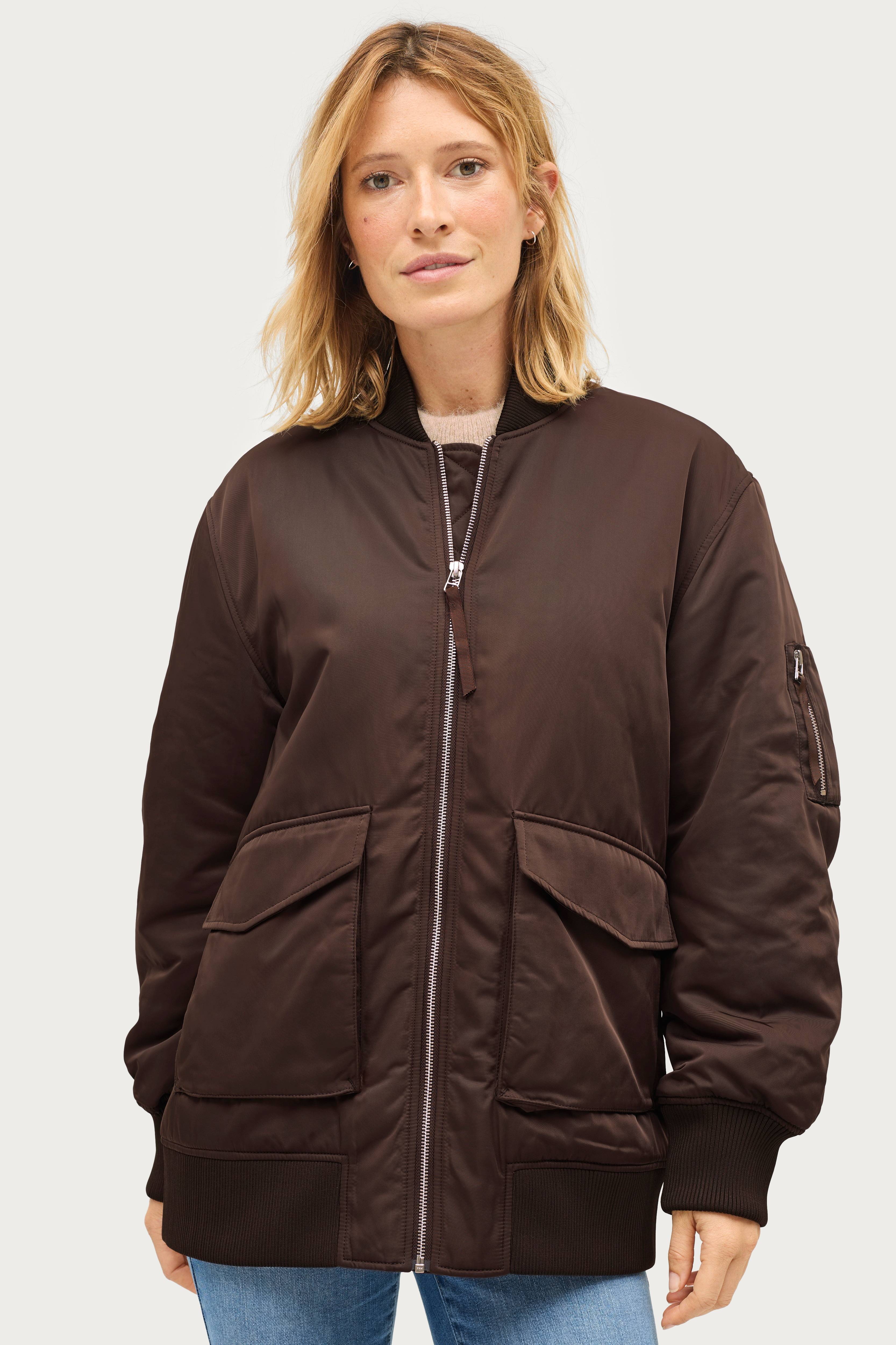 • Topattu bombertakki hieman kiiltävällä ulkokankaalla