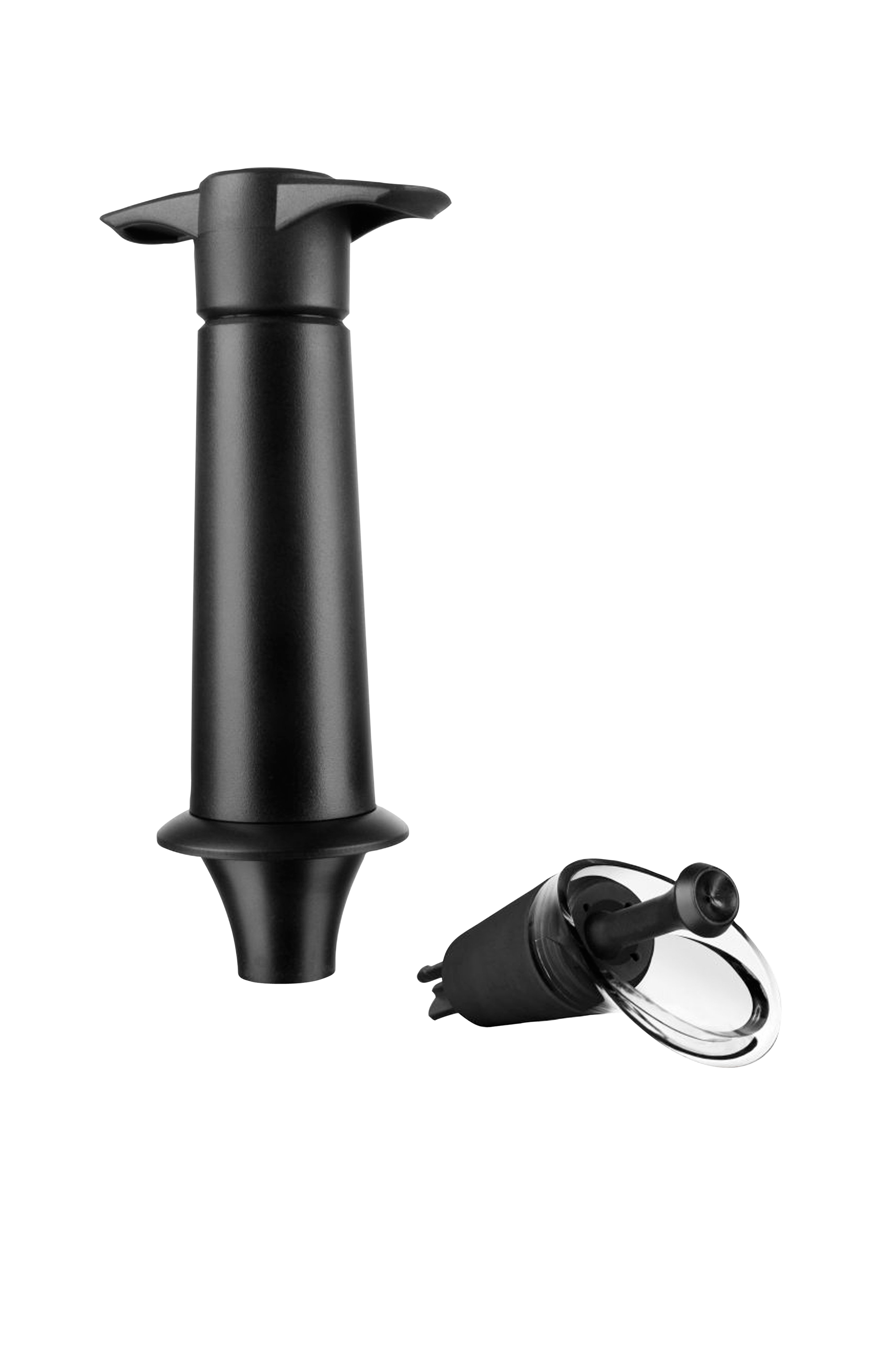 Viinisäilyttäjä & tarjoilija yhdistää viinin säästämisen ja patentoidut tarjoilutoiminnot. Luo tyhjiön, joka hidastaa hapettumisprosessia ja säilyttää viinin pidempään. Antaa naksahduksen, kun optimaalinen tyhjiö on saavutettu. Tarjoilija ja tulppa toimivat tiivisteenä ja tippumattomana kaatajana.