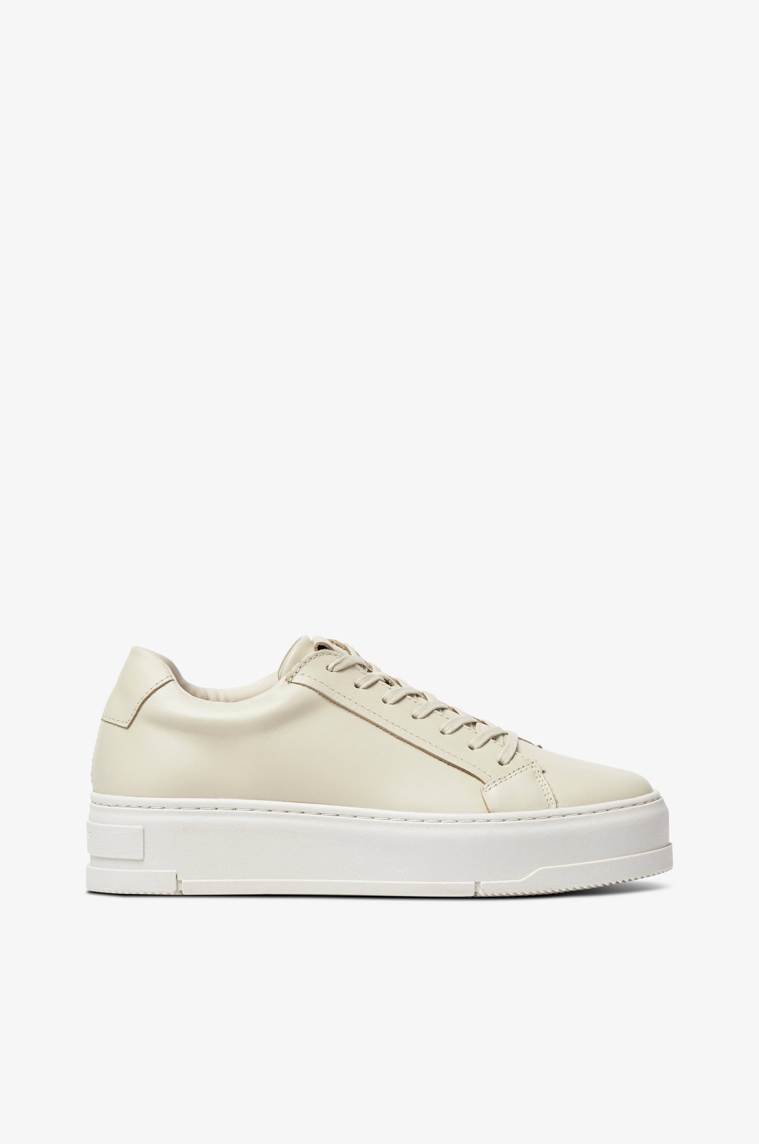 Vagabond Judy -tennarit. Klassinen malli, tyylikäs nahkapäällinen ja vaaleareunainen korkeahko pohja. Mukava toppaus aukon reunassa. Litteät kengännauhat kulkevat raakareikien läpi. Pohjan korkeus n. 4 cm.