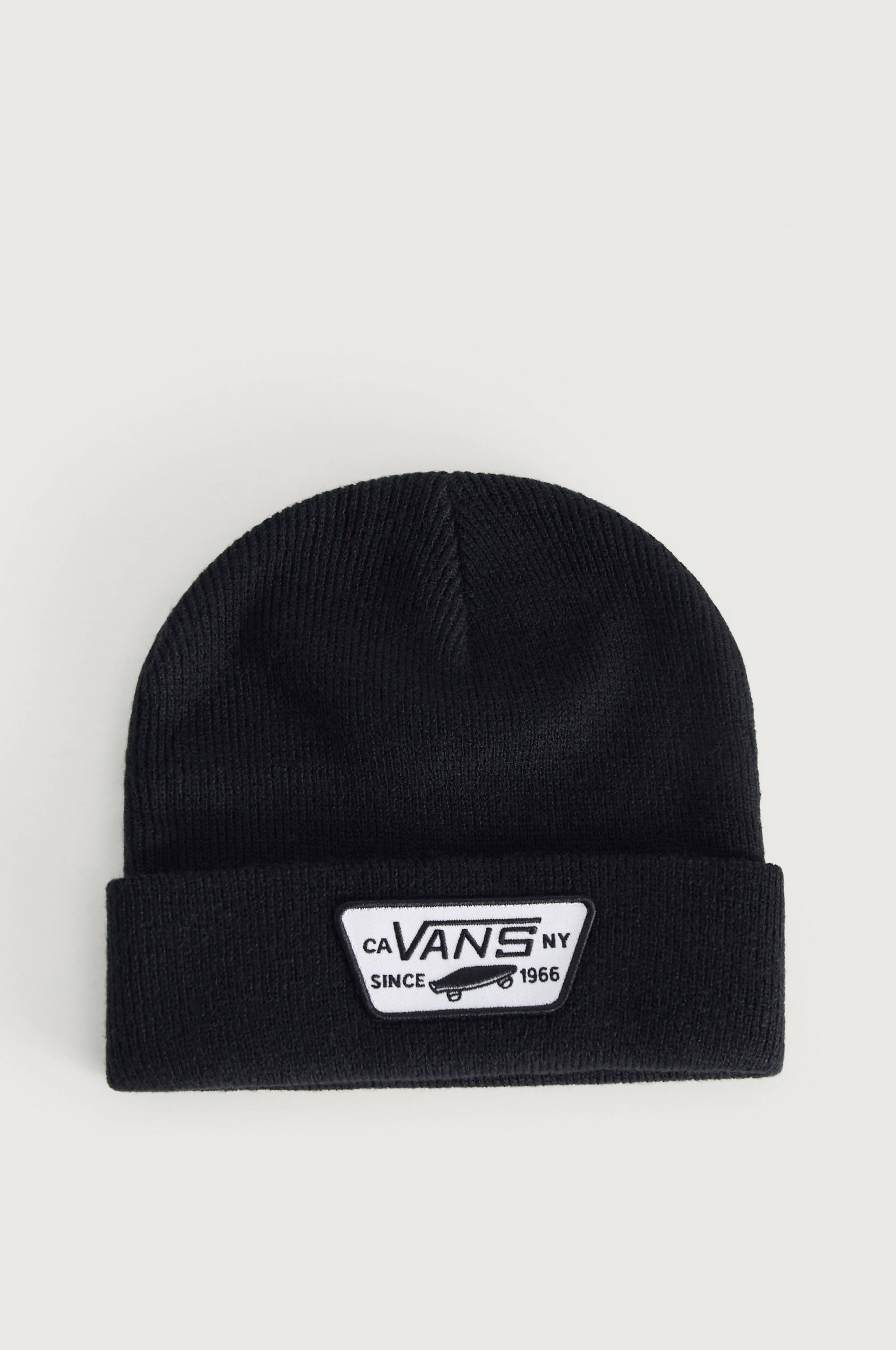 Vans Mn Milford Beanie -pipo kaksinkertaista joustinneuletta. Kankainen Vans-merkki käännetyssä reunassa.