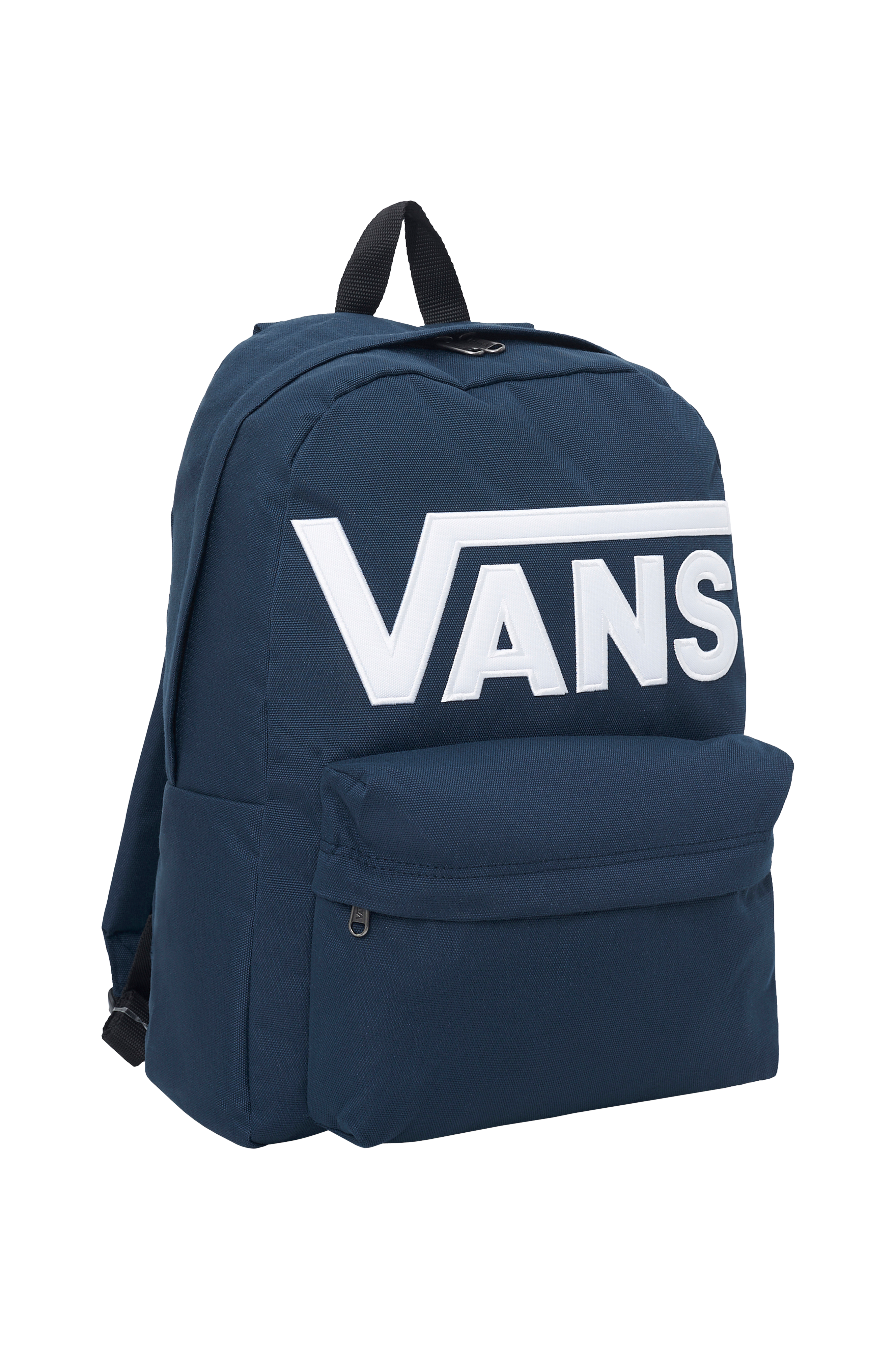 Reppu kanvaasia. Vans-merkki ja mukavat topatut olkahihnat, joissa säädettävä pituus. Päälokero suljetaan kaksisuuntaisella vetoketjulla. Topattu selkä. Vetoketjullinen ulkolokero ja avoin sivutasku. Ulkolokerossa yksi avotasku, yksi kynätasku ja yksi vetoketjutasku. Kangaskahva ylhäällä. Mitat n. L 30 x K 42 x S 12 cm.