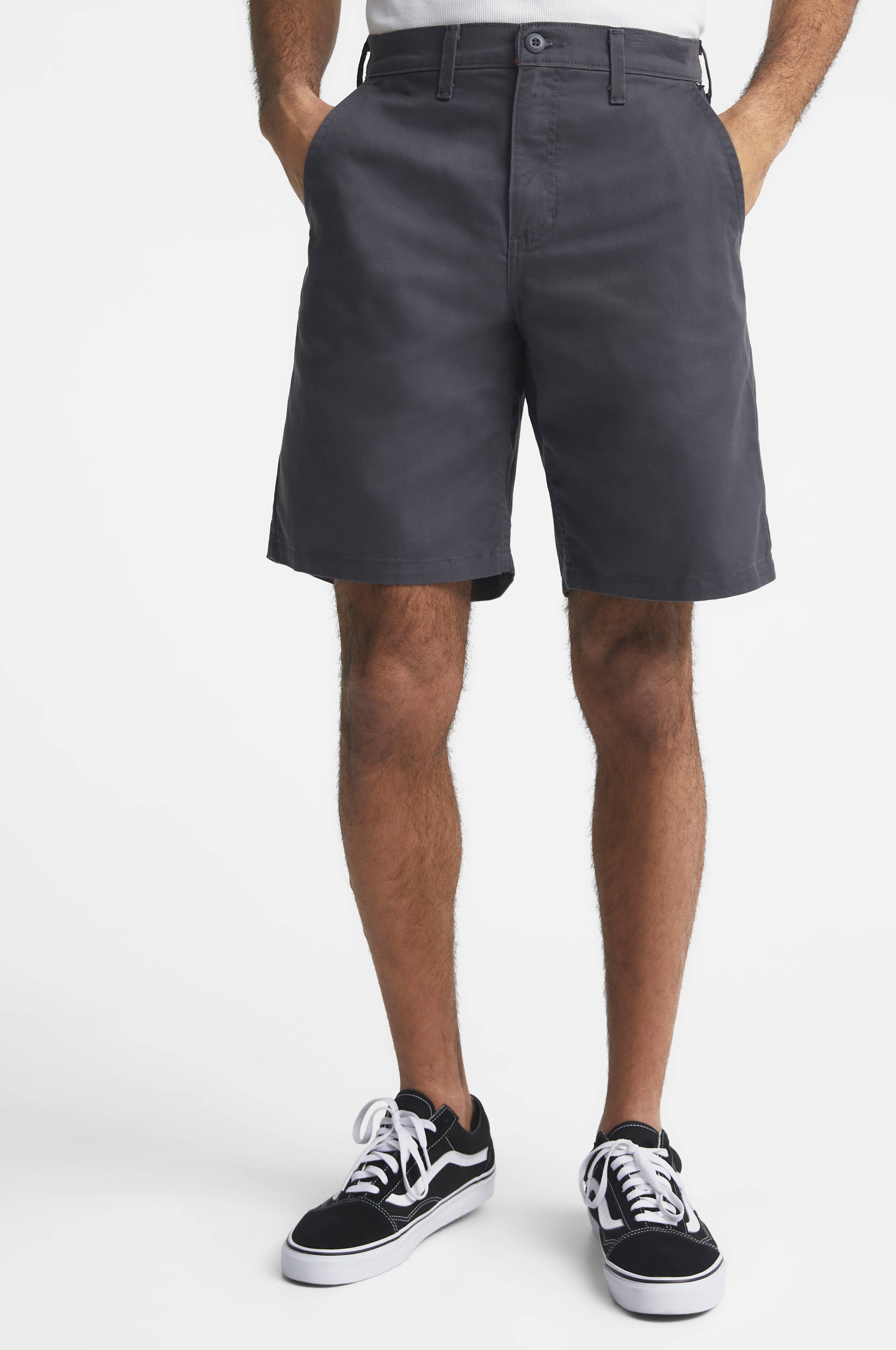 Vans-shortsit, joissa rento istuvuus. Shortseissa on kaksi sivutaskua ja kaksi napillista takataskua. Vetoketjullinen etuhalkio. Joustava materiaali.