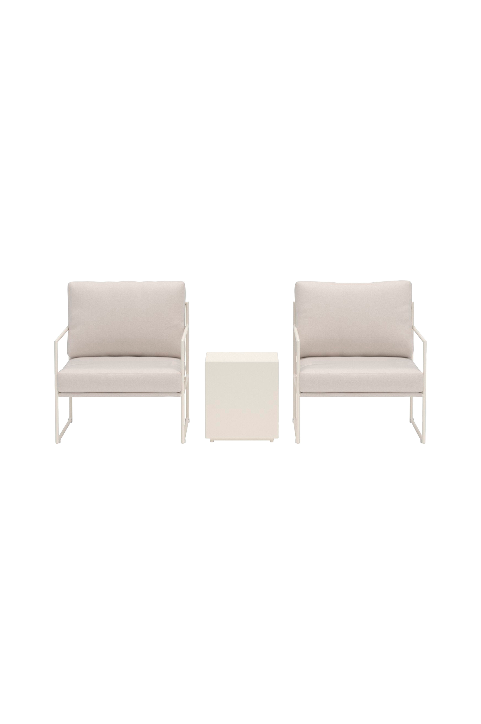 Lissabon-lounge-sarja on tyylikäs ja ajaton beige kalusteryhmä, joka luo terassillesi rennon ja hienostuneen tunnelman. Pehmeillä tyynyillä varustetut avokätiset nojatuolit kutsuvat pitkiin rentoutumishetkiin, kun taas tyylikäs sivupöytä tarjoaa käytännöllisen alustan kahville, kirjoille tai kesäjuomille. Minimalistisen muotoilunsa ja miellyttävän värisävynsä ansiosta lissabon-lounge-setti sulautuu saumattomasti erilaisiin ympäristöihin tehden ulkoilmaelämästä sekä mukavaa että tyylikästä. Tuoli: Istuin: 80x70x70 Pöytä: 80x70x70: 40x40x44