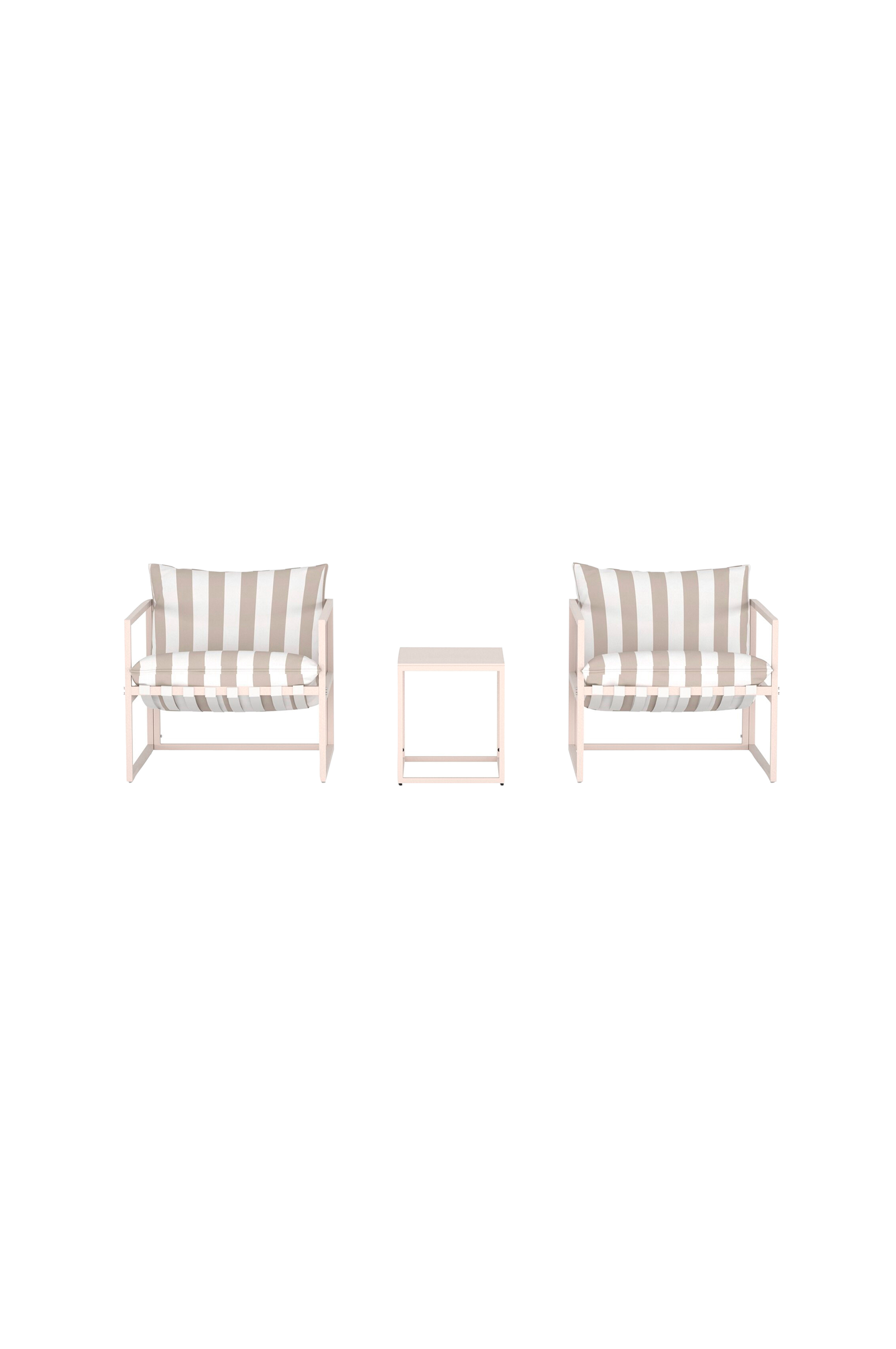 Messina on tyylikäs oleskelusetti, jossa yhdistyvät moderni muoto ja rento tunnelma. Sarjaan kuuluu kaksi avokätistä nojatuolia, joissa on pehmeät tyynyt kauniilla raidallisella kankaalla, sekä käytännöllinen pöytä - täydellinen kahvikupille, iltajuomalle tai suosikkikirjallesi.