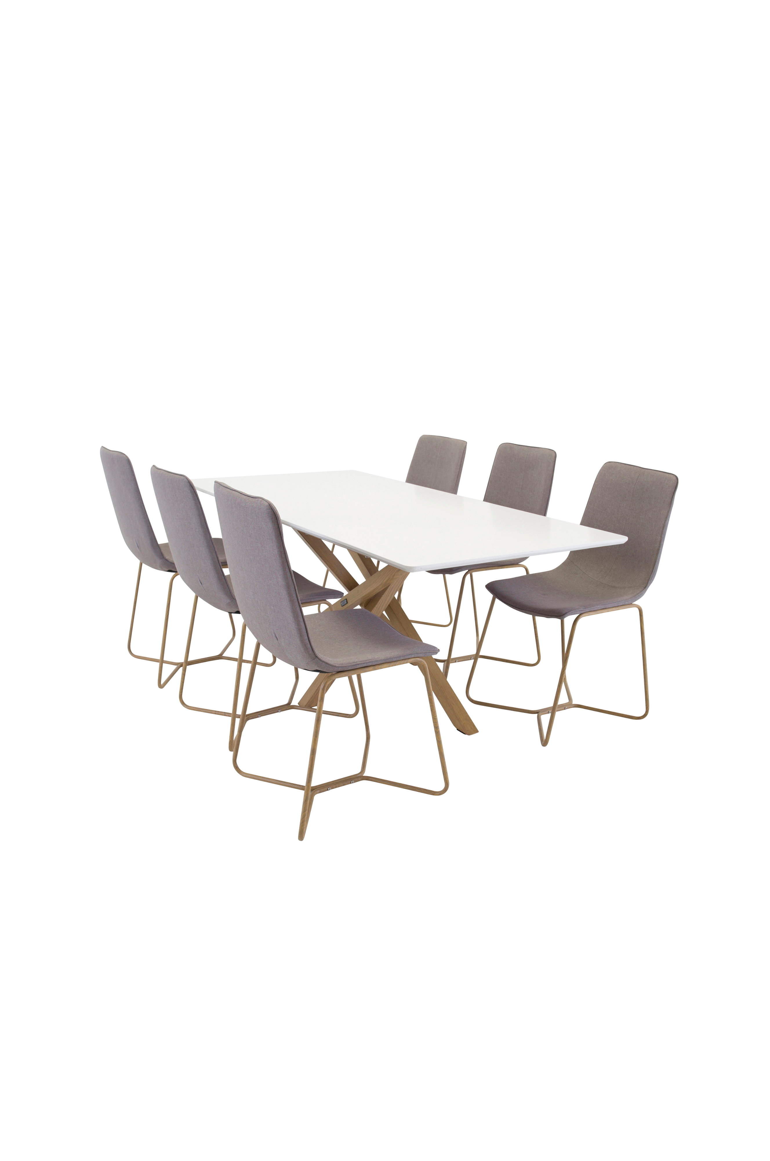 tähän ruokailusarjaan kuuluu kuusi tuolia, joten se sopii erinomaisesti suurempiin kokoontumisiin ja perheillallisiin. Pohjoismaisen muotoilunsa ja modernin estetiikkansa ansiosta tästä kokonaisuudesta tulee viihtyisä tila seurustelulle ja yhdessäololle. Luo kutsuva ilmapiiri ja nauti toveruudesta piazza-ruokapöydän ja x tuolin avulla.