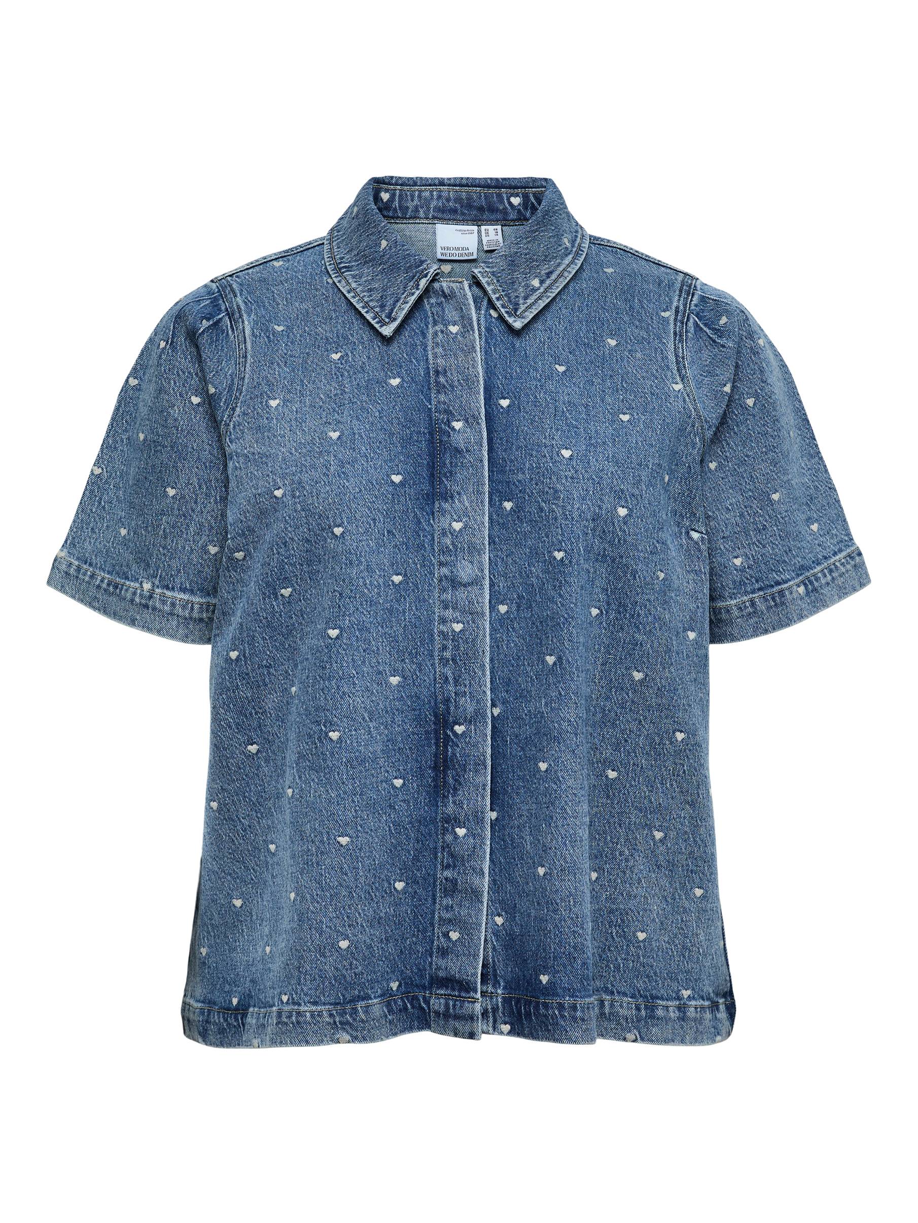• Farkkupaita pienillä, kirjailluilla sydäneillä kauttaaltaan• Lyhyet hihat• Lukko neppareilla• Plus-koot