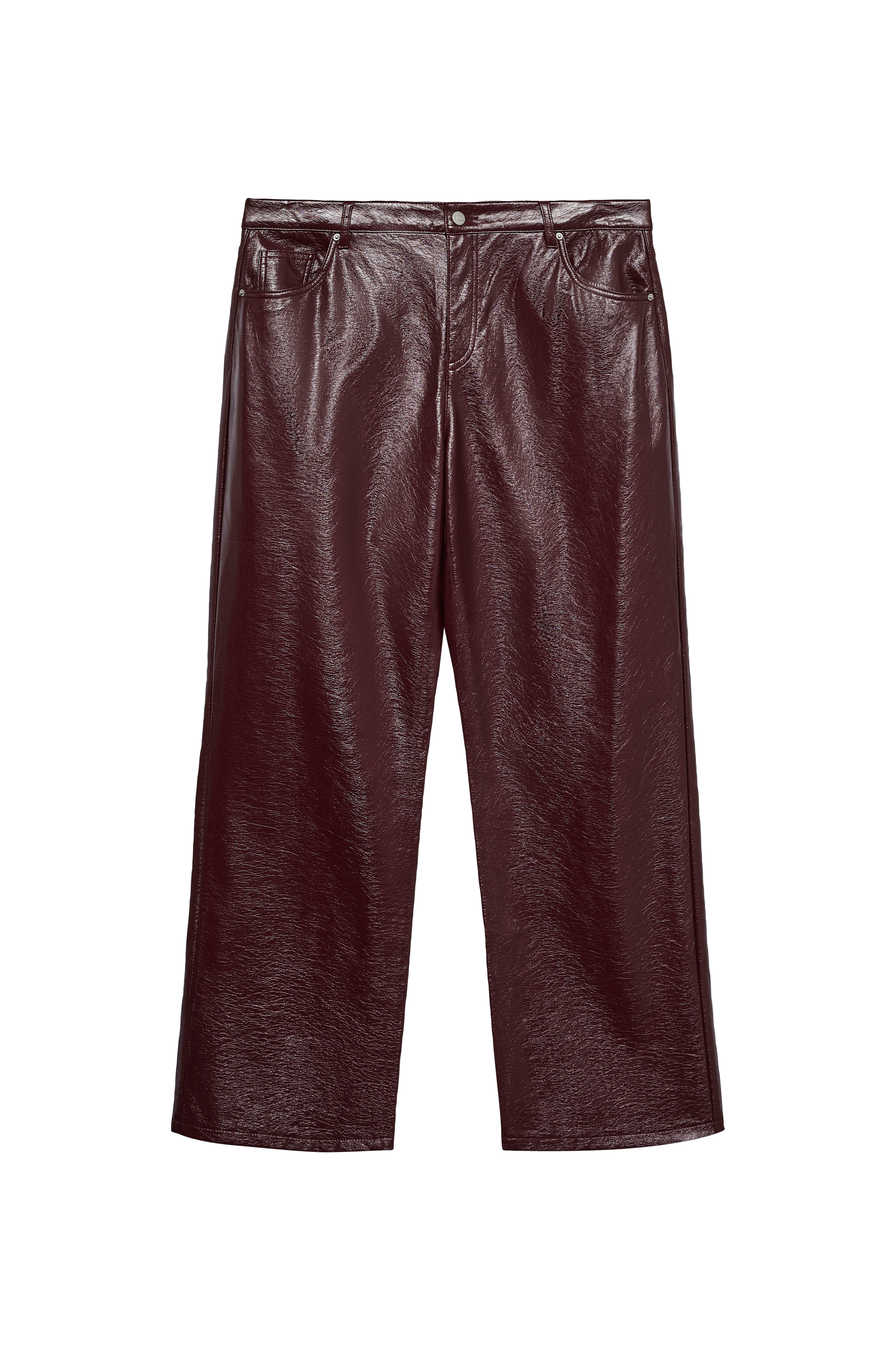 • Kiiltävät, leveät housut• Korkea vyötärö• Vetoketju ja napitus• 5-taskuinen malli• Plus-koot