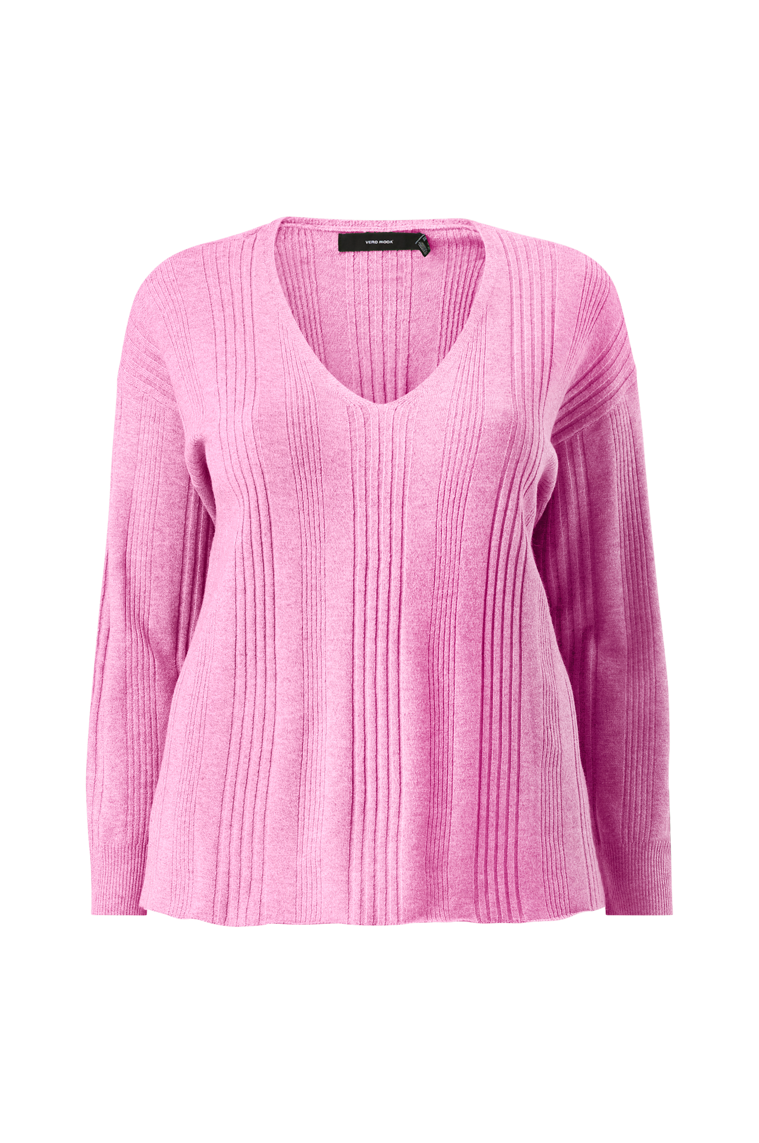Pehmeä joustinneulepusero, jossa V-pääntie. Pitkähkö malli ja madalletut olkapäät.