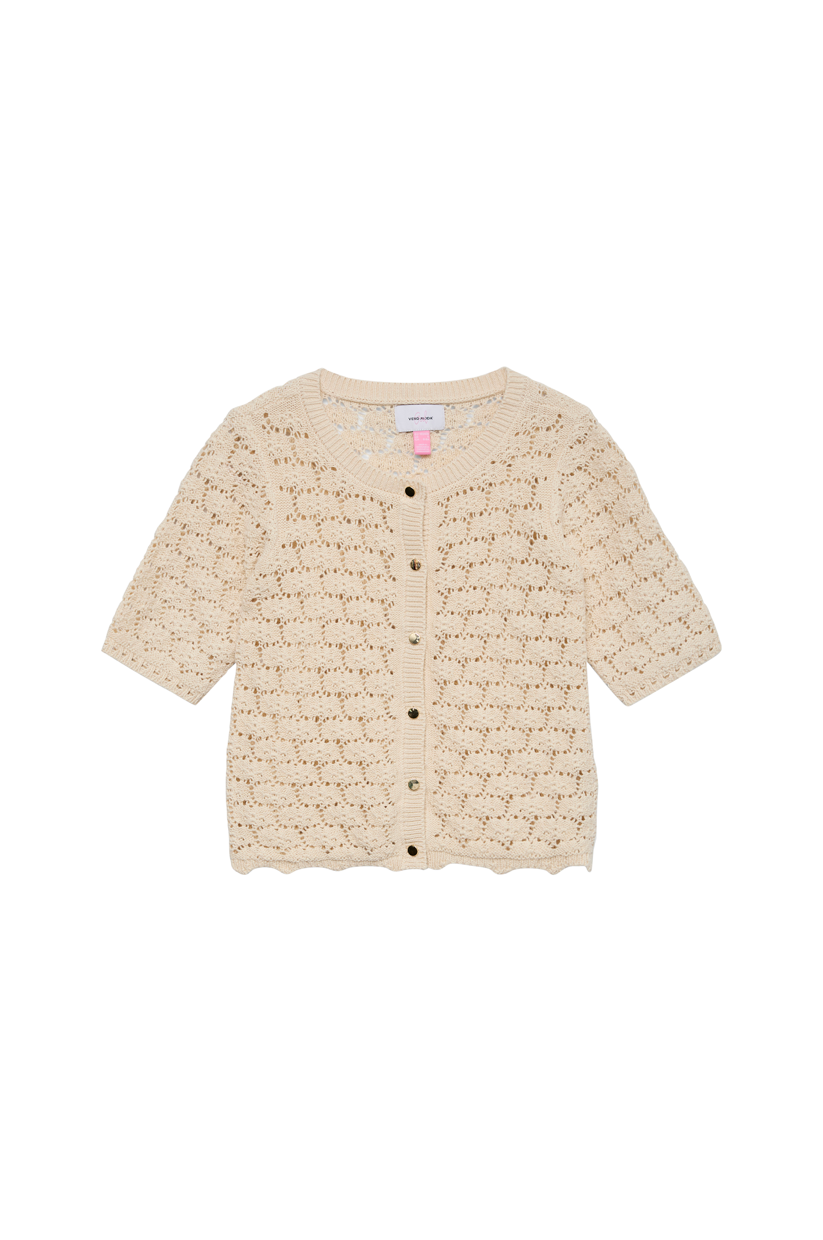 • Rakenneneulottu neuletakki reikäkuvioinnilla• Kullanväriset napit edessä• Lyhyet hihat