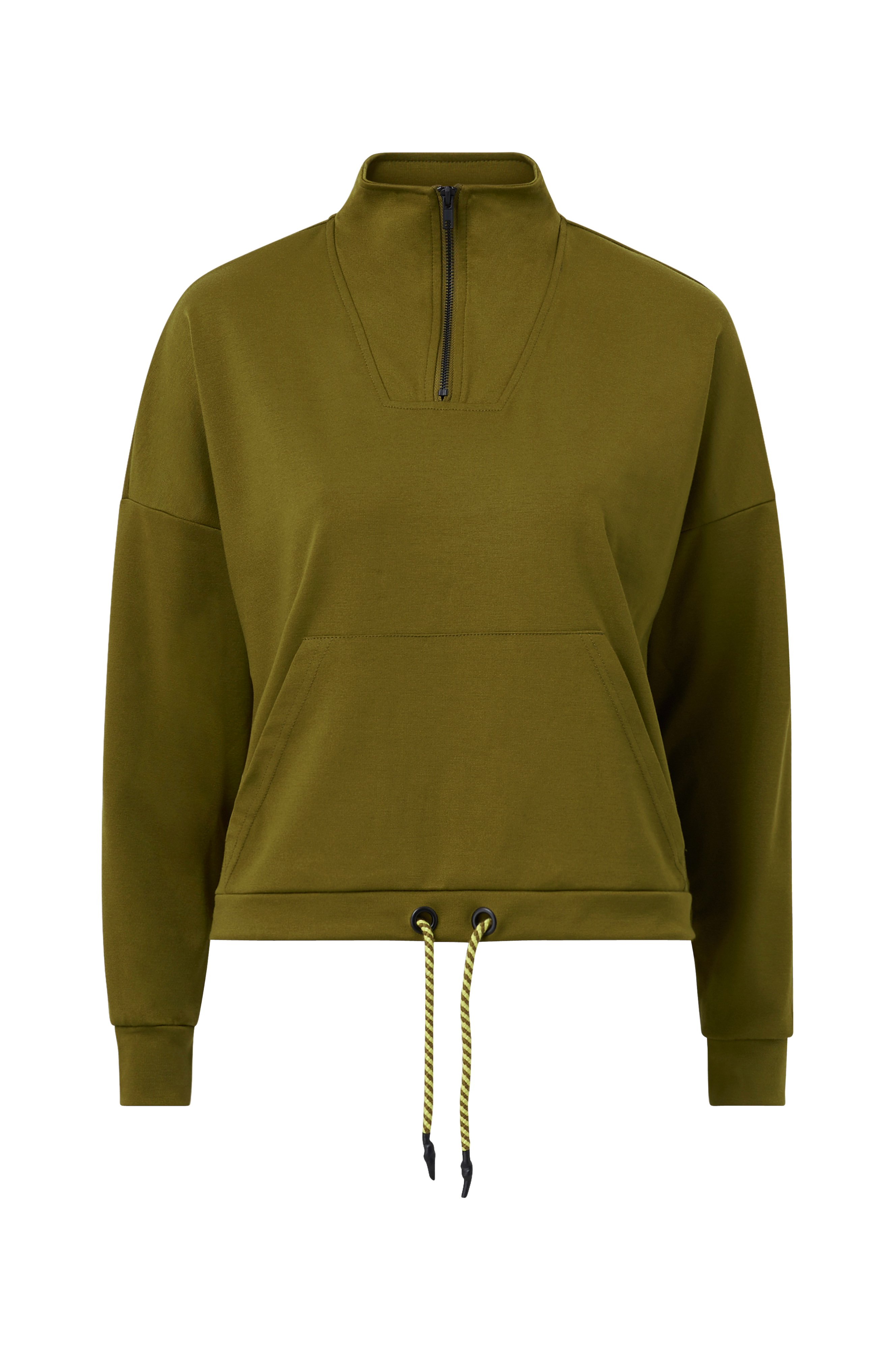 Vero Moda vmCharlie LS Zip Sweat -collegepusero. Väljä laatikkomainen malli, jossa nyöri helmassa, korkea pääntie ja vetoketju edessä. Pitkät hihat, joissa madalletut olkapäät ja resori hihansuissa. Hupparitasku.
