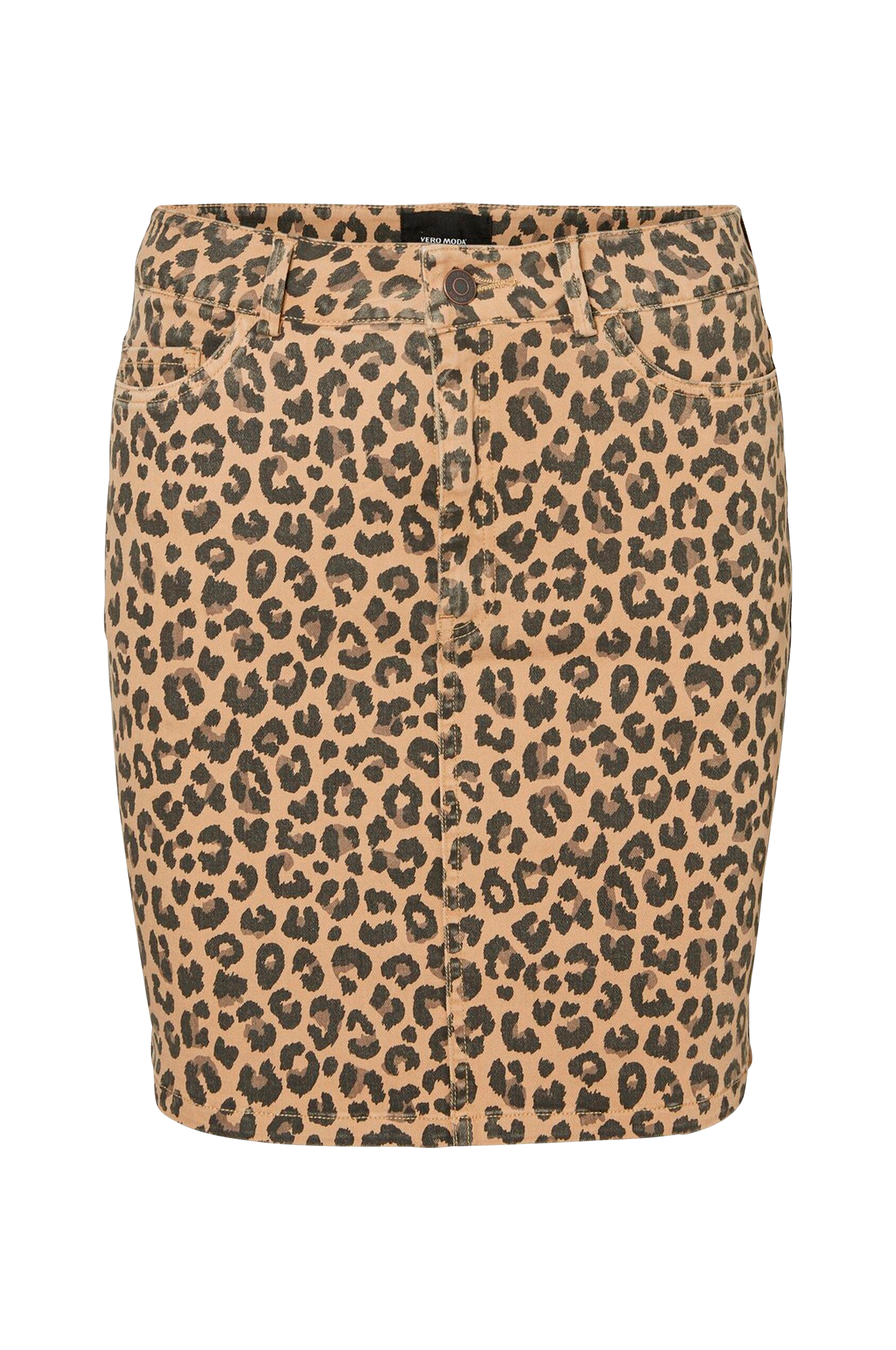 Vero Moda vmLeonora MR Short Skirt -hame. Lyhyt ja kapea malli eläinkuvioista stretchmateriaalia. Hameessa on viisi taskua, vetoketjullinen etuhalkio ja vyötäröllä nappi. Pituus n. 41 cm koossa S.
