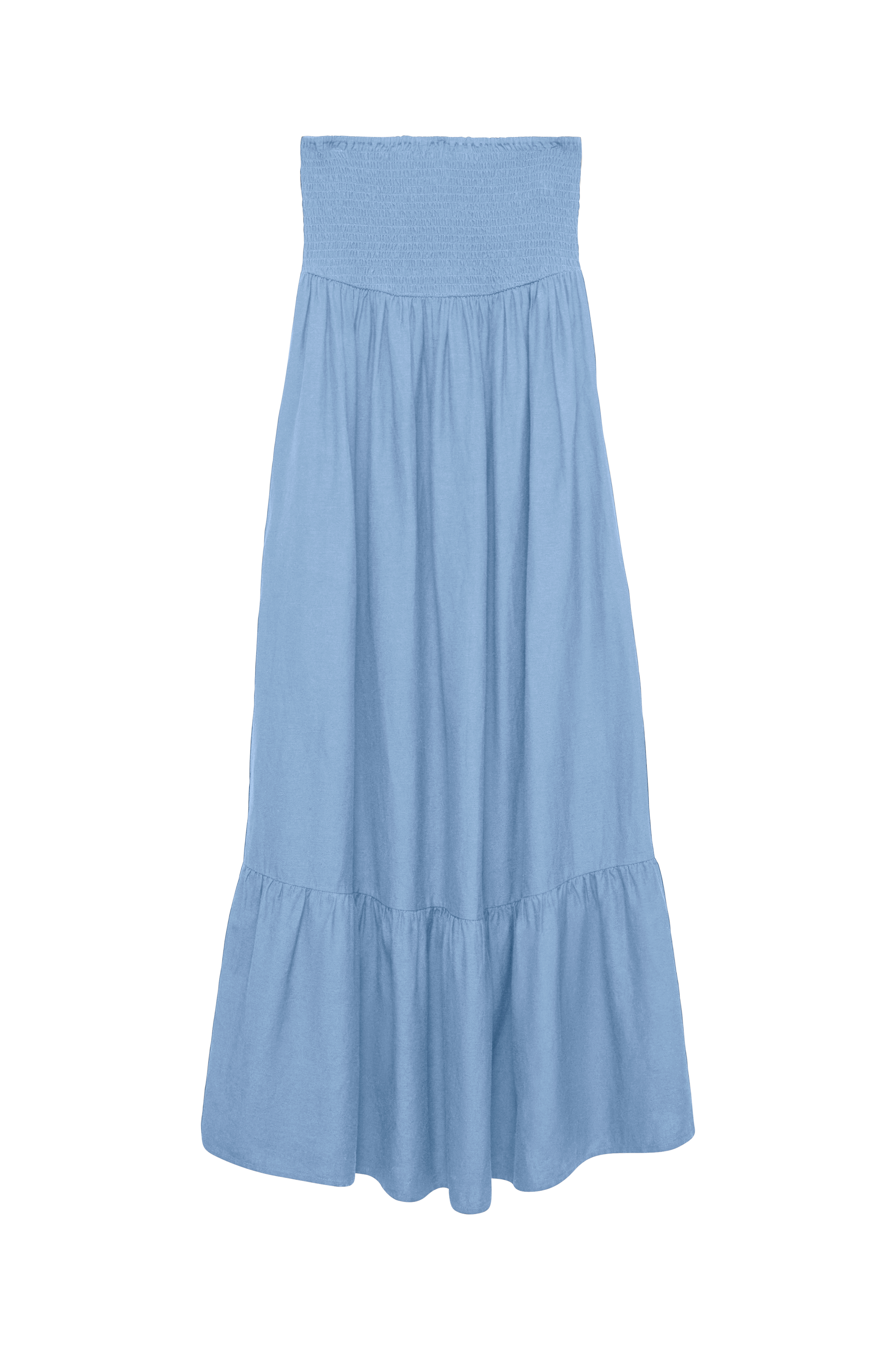 • Pitkä, hihaton mekko• Laskostettu bandeau-yläosa• Sivutaskut• Röyhelö alhaalla• Pituus: 119 cm koossa S