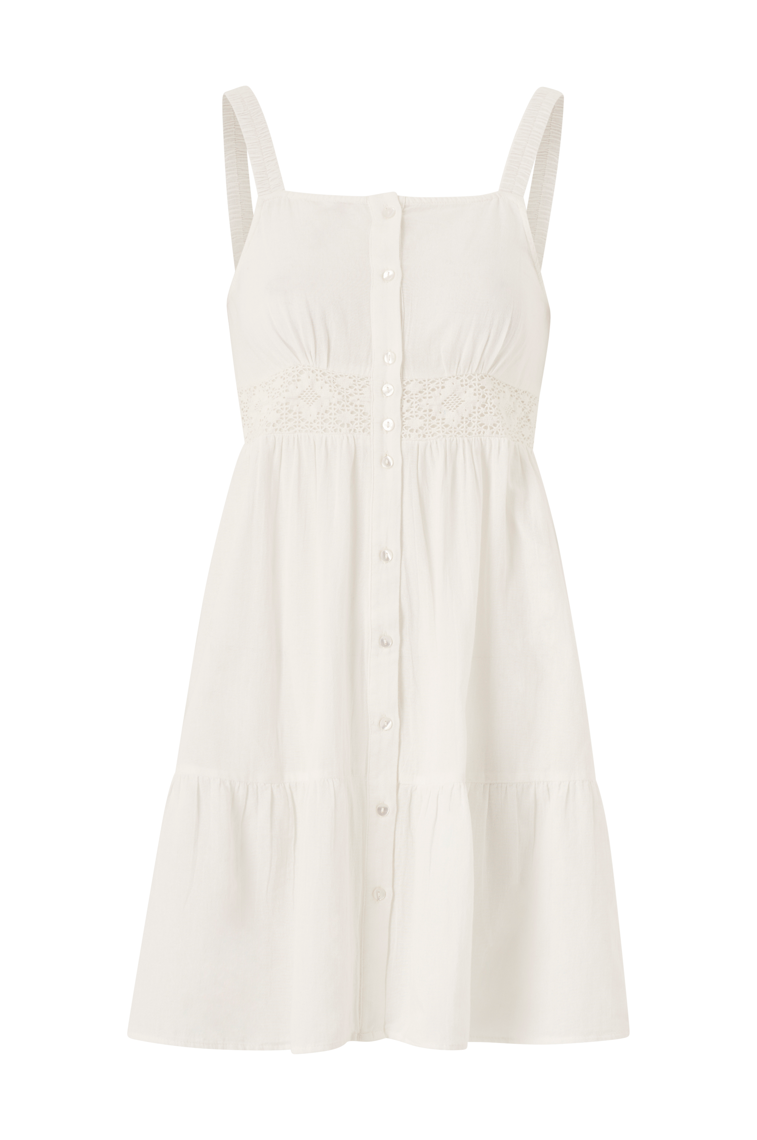 • Lyhyt, levenevä malli• Elastiset olkaimet• Napit edessä• Rypytys selässä• Pitsi edessä• Pituus: 89 cm koossa S