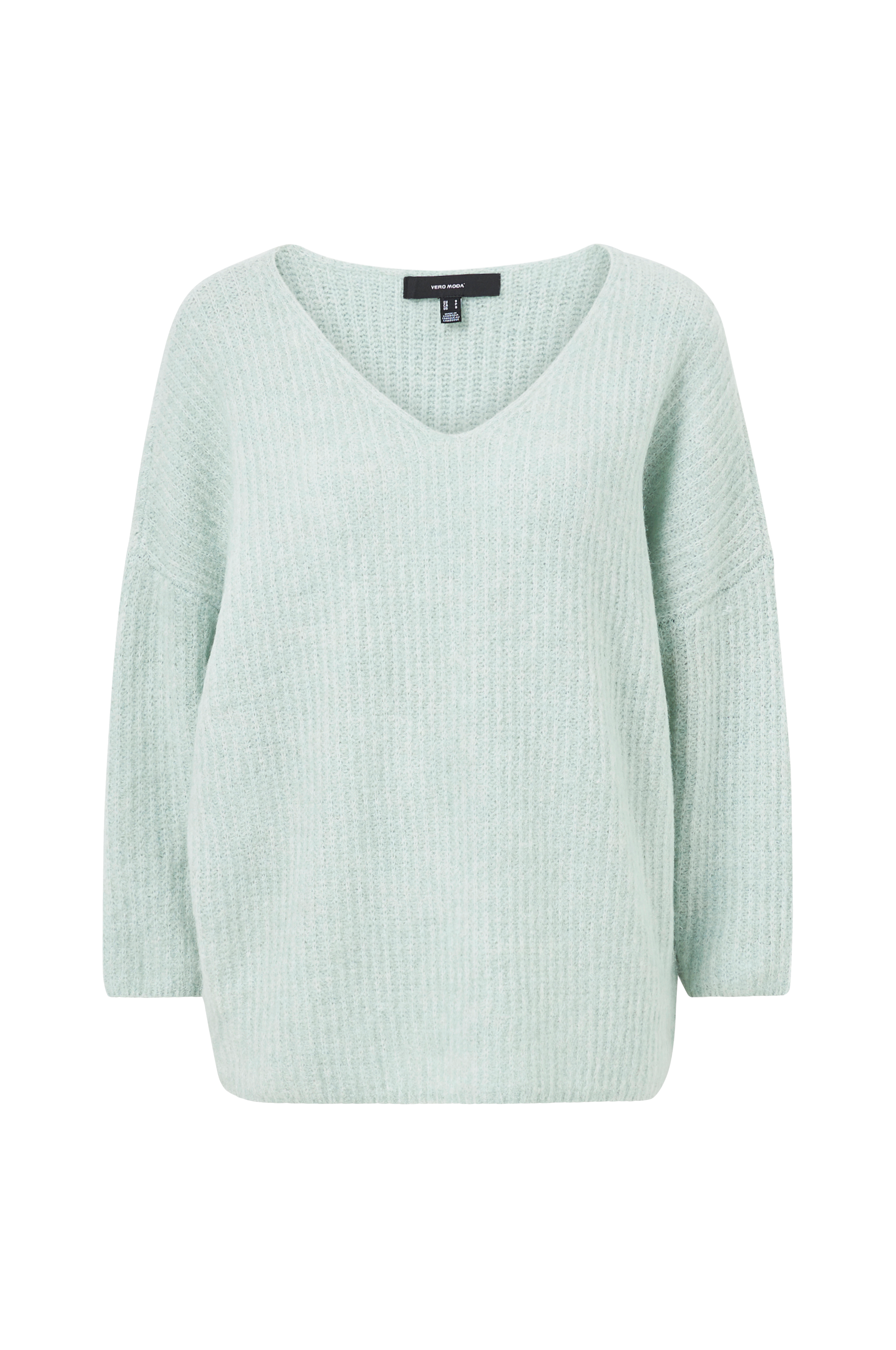 Pehmeä oversize-mallinen neulepusero, jossa V-pääntie, leveät 3/4-pituiset hihat ja madalletut olkapäät.
