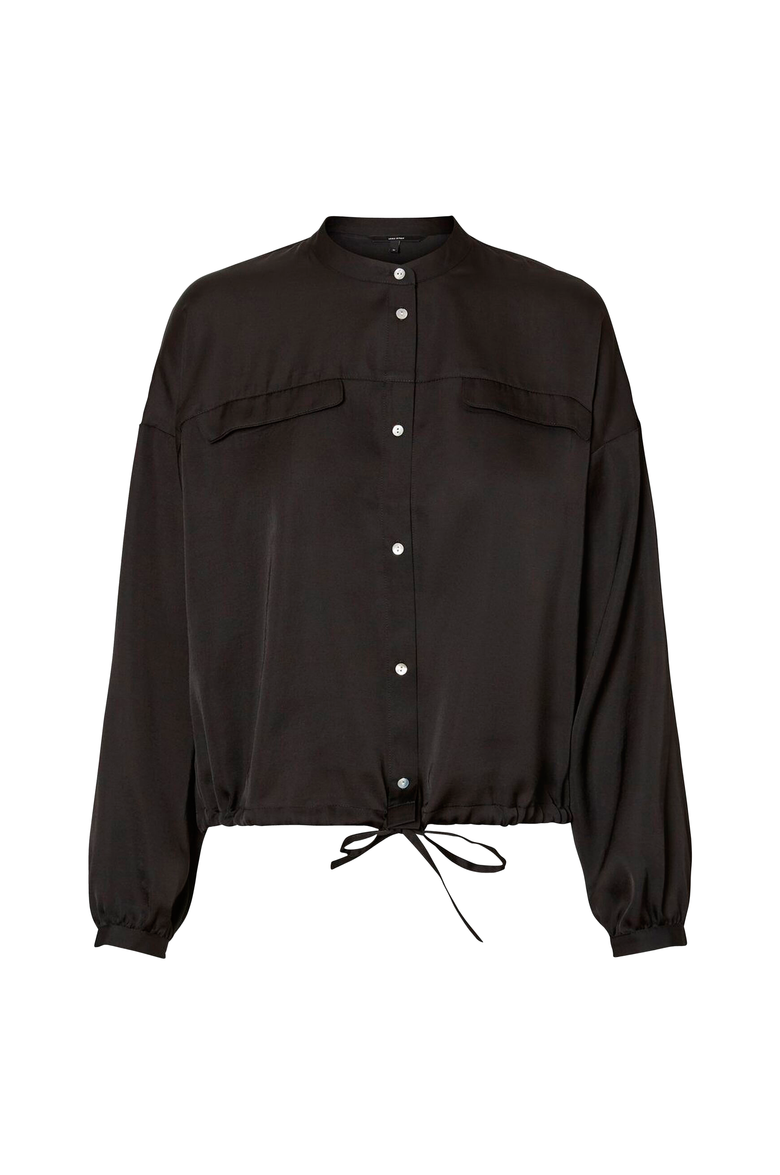 Vero Moda vmAnny SL Shirt -paita. Lyhyt laatikkomainen malli, jossa nyöri helmassa. Edessä napit ja koristetaskunkannet. Pitkät hihat, madalletut olkapäät ja kapeat, napittomat kalvosimet.