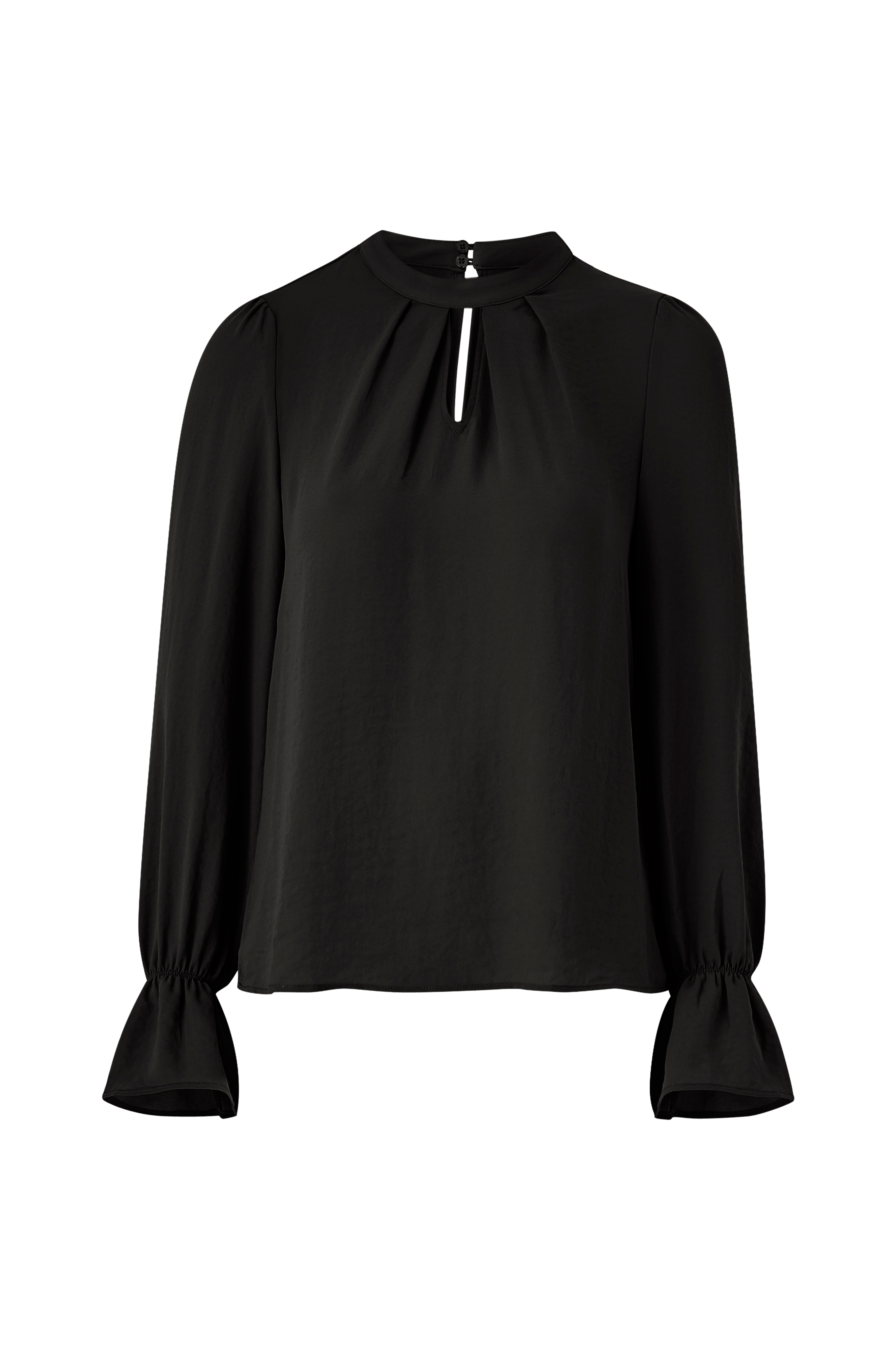 Vero Moda vmZigga L/S High Neck Pleat Top -paita. Suora malli ja erittäin pitkät puhvihihat, joissa kuminauhasauma alhaalla. Pieni päälle ommeltu reuna pääntiessä, halkio ja ommellut laskokset edessä sekä halkio ja napit niskassa. Pehmeästi laskeutuvaa kreppimateriaalia.