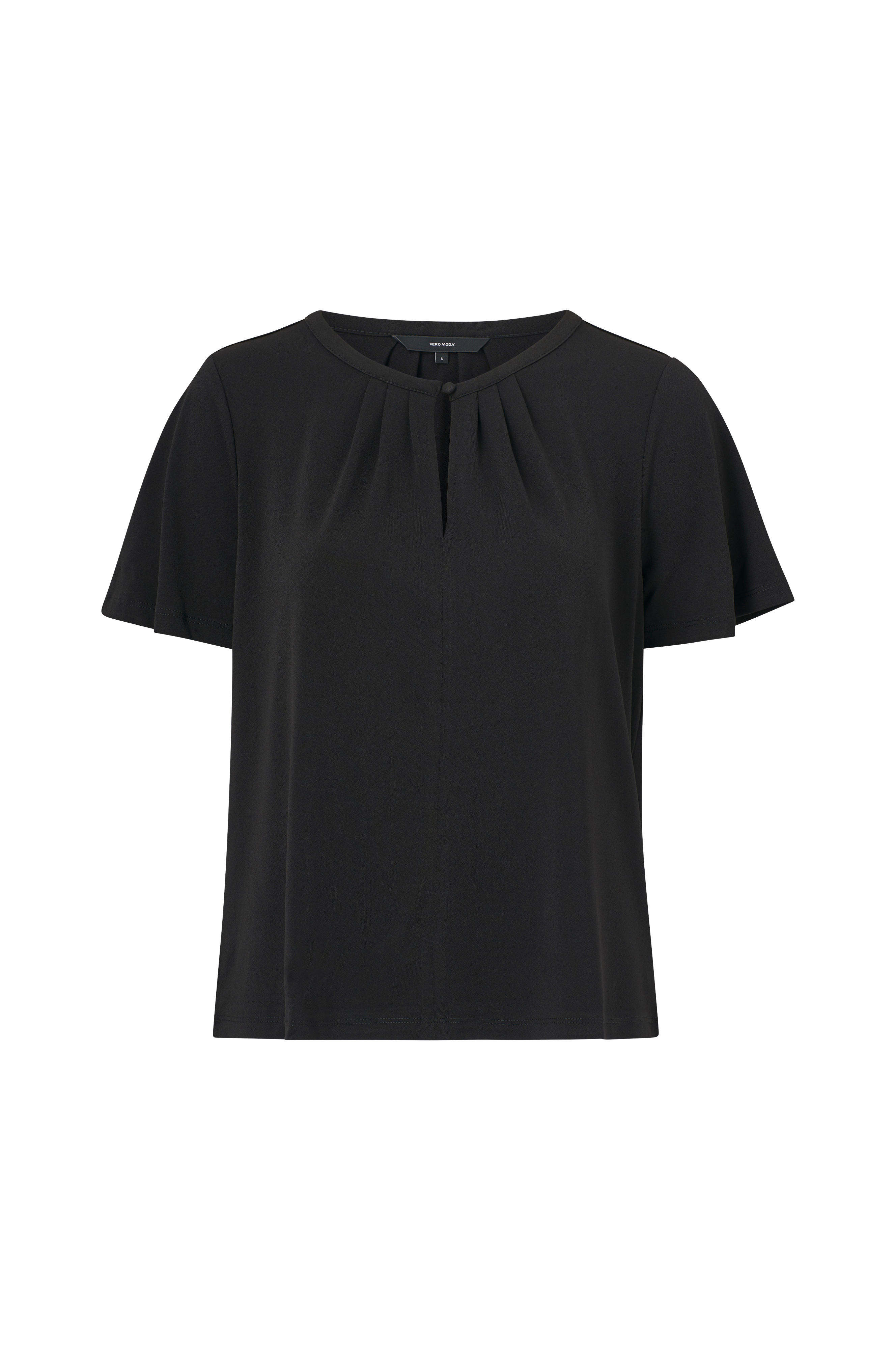 Vero Moda vmMilla SS Button Top -pusero. Lyhythihainen malli ja pyöreä pääntie, jossa ommellut laskokset, halkio ja päällystetty nappi edessä. Ommellut laskokset niskassa. Erittäin joustavaa trikoota.