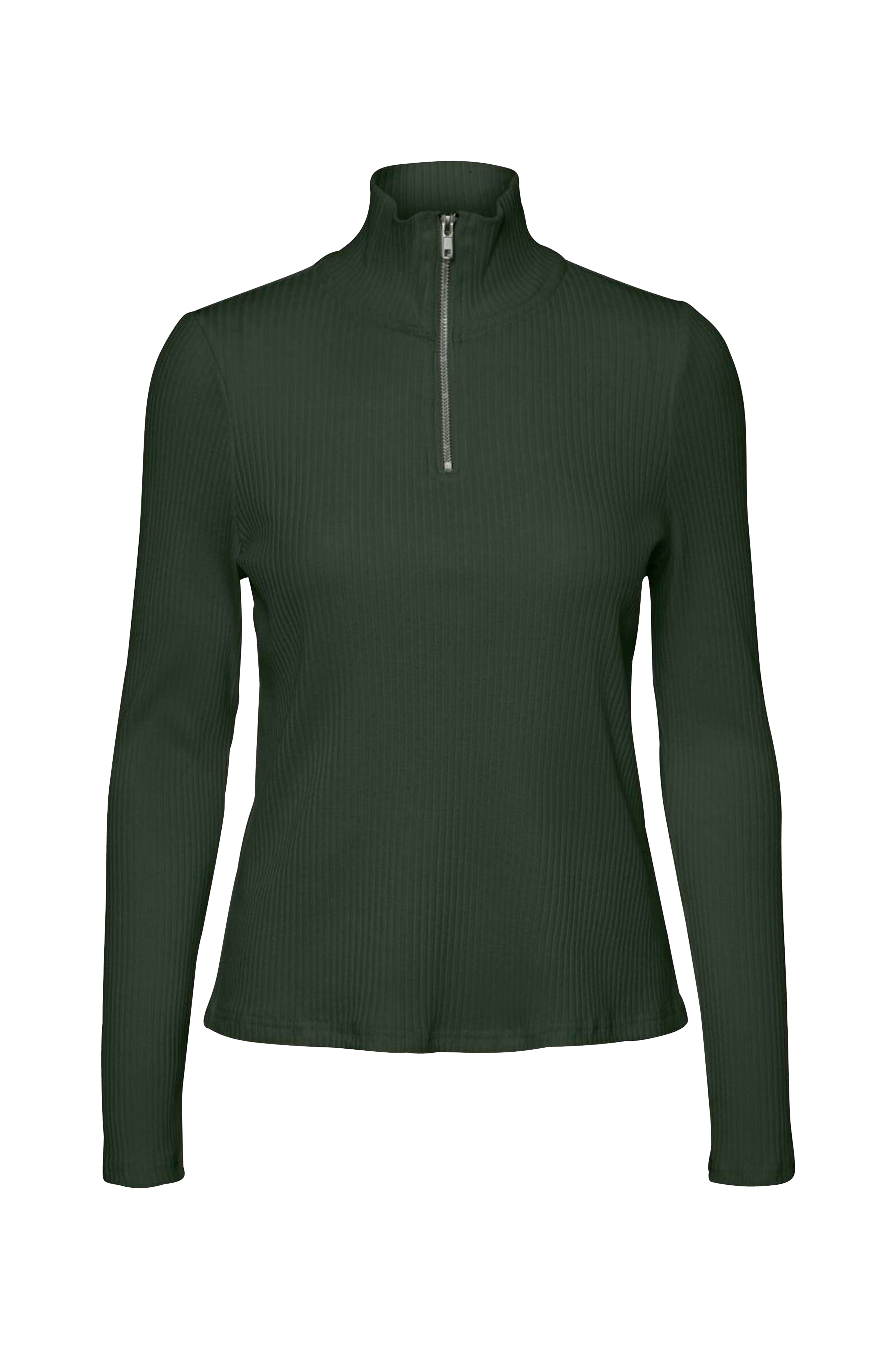 Vero Moda vmRachel L/S Highneck Rib Top -pusero ribbineulosta. Korkea kaulus, jossa vetoketju edessä. Suora malli.
