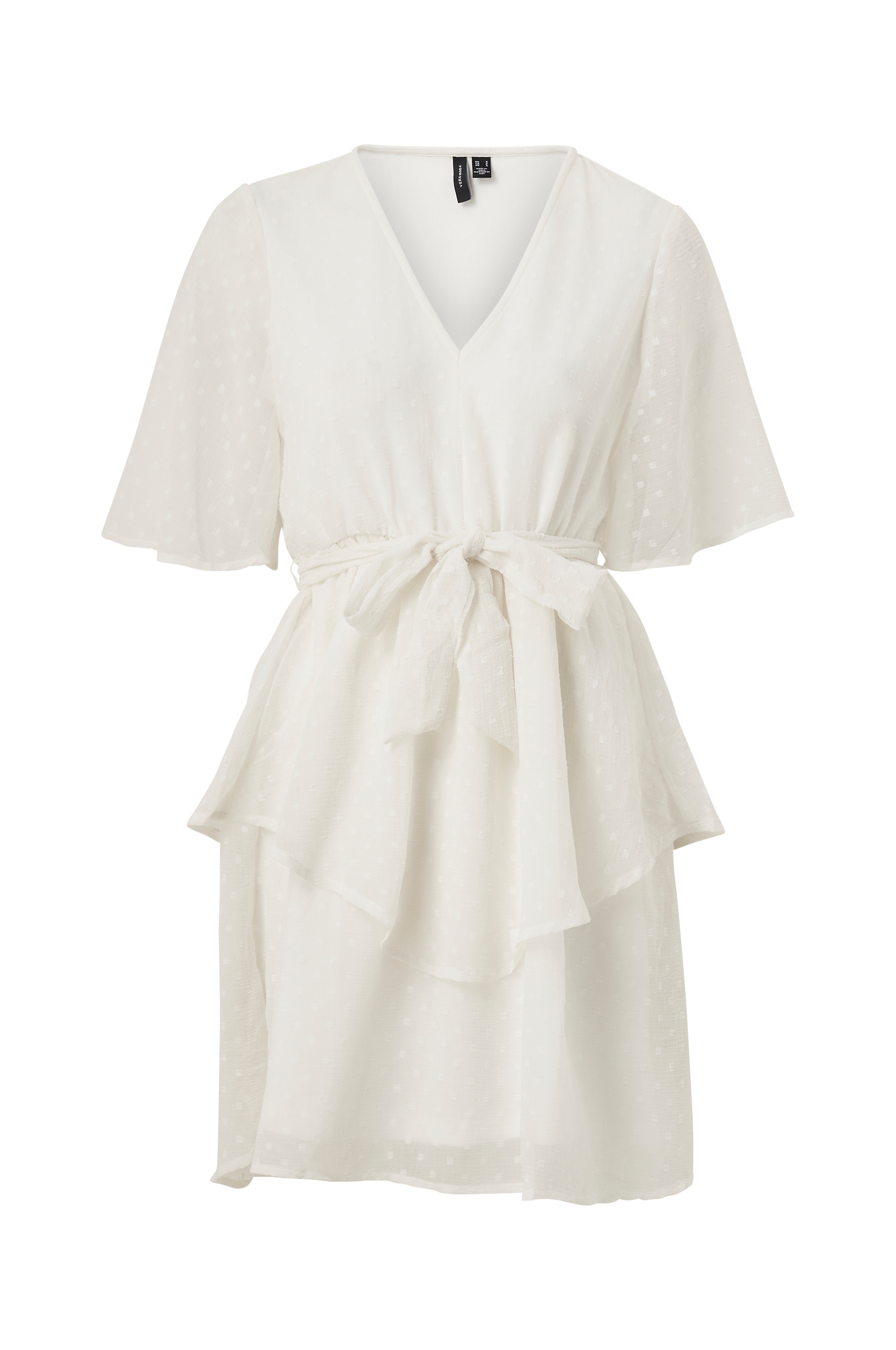 • Mekko sifongista rakennekuviolla• V-kaula-aukko• Lyhyet perhoshihat• Joustava vyötärö itsesolmittavilla vöillä• Röyhelöhame• Trikoovuori• Pituus: 90 cm koossa S