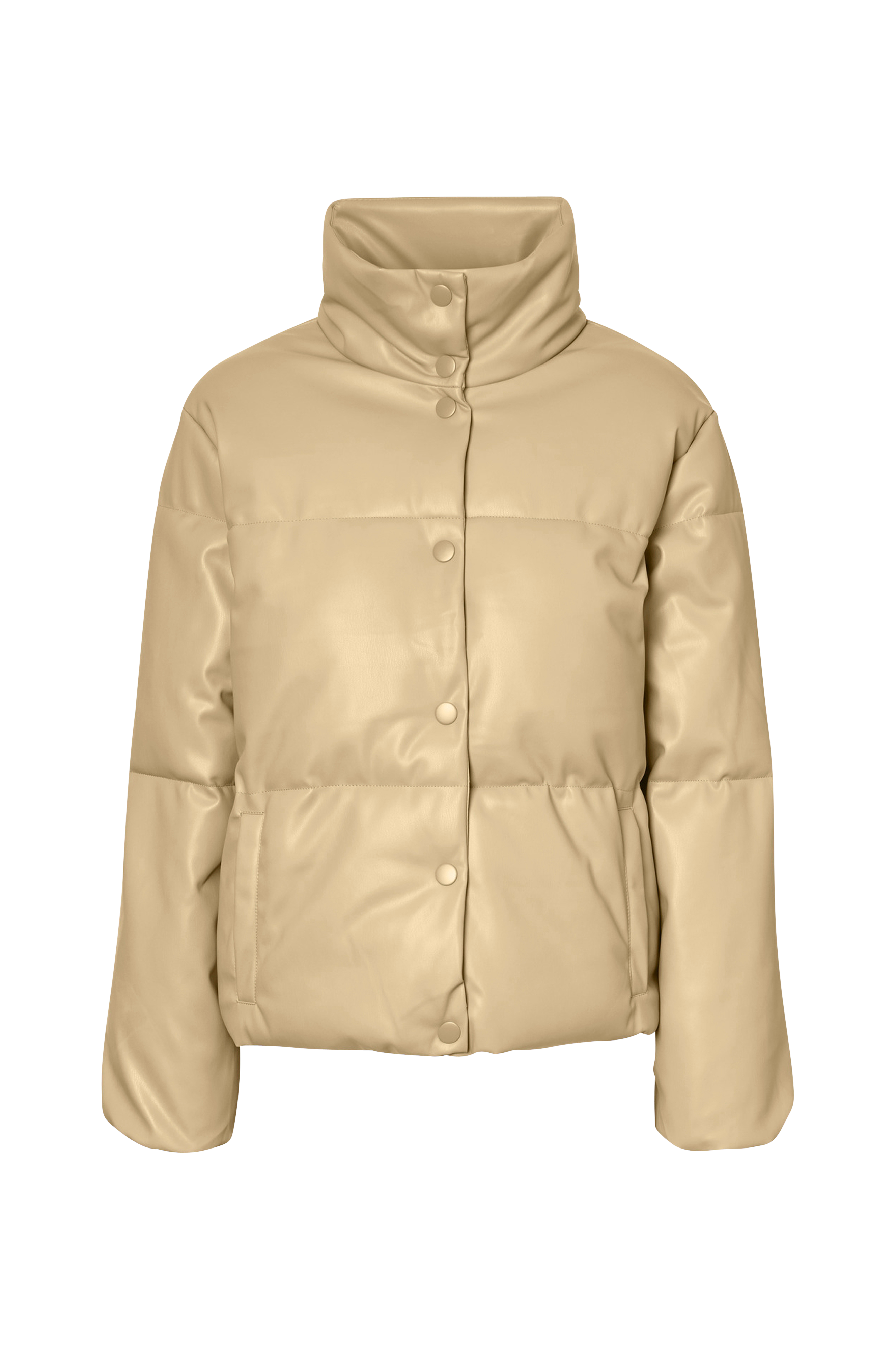 Vero Moda vmEmily Short Coated Jacket -takki, lyhyt topattu malli. Päällyskangas nahkajäljitelmää. Edessä painonapit ja taskut. Pystykaulus ja hihansuissa piilokuminauha. Pituus n. 56 cm koossa S.