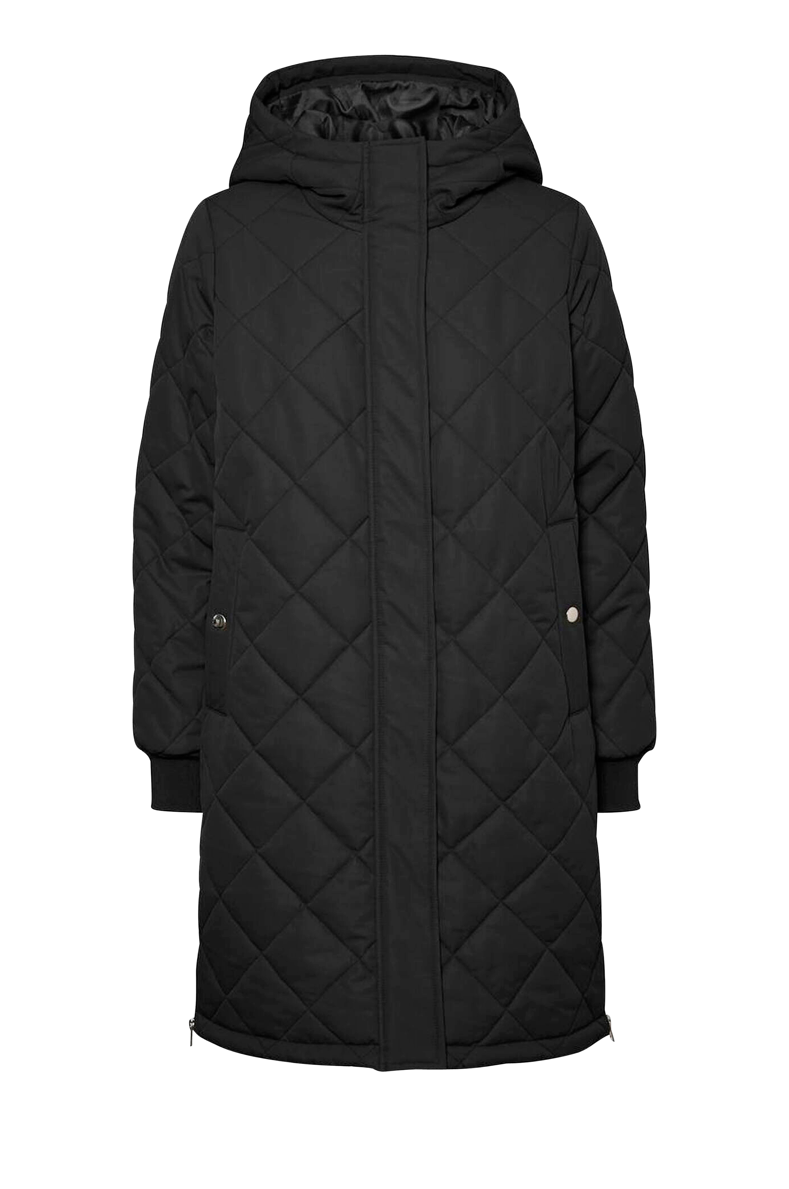 Vero Moda vmLouise 3/4 Jacket -takki. Topattu, tikattu malli, jossa nappilistassa piilovetoketju ja piilopainonapit. Topattu huppu ja korkea kaulus sekä kaksi upotettua taskua, joissa painonappi. Resori hihansuissa. Helmassa vetoketjulliset sivuhalkiot. Pituus n. 90 cm koossa S.