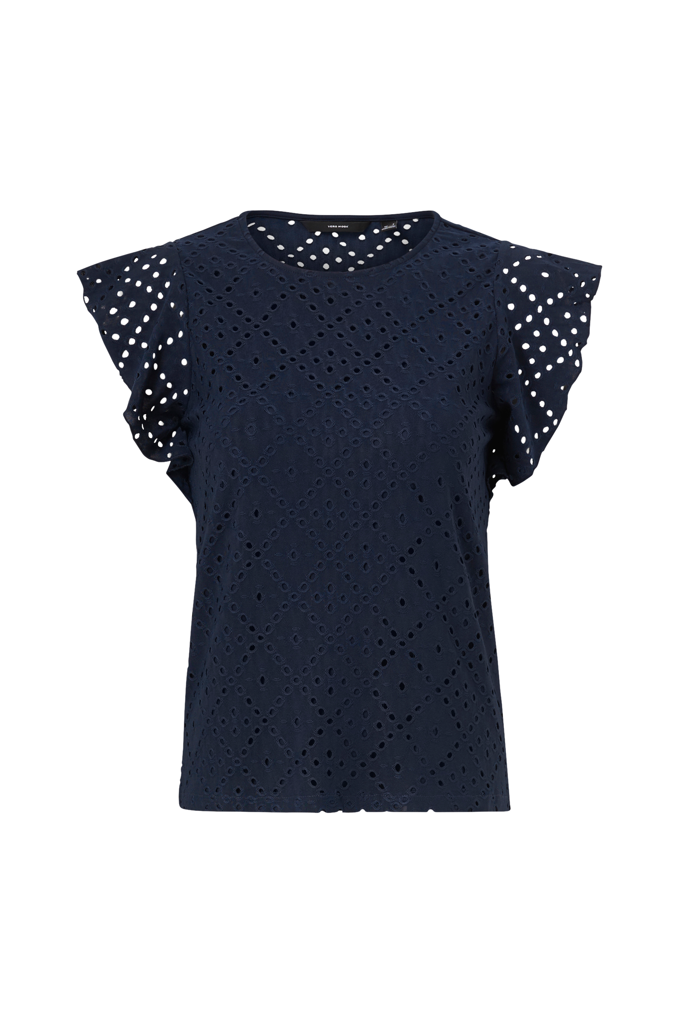 • Vuorattu toppi• Joustava materiaali• Reikäkirjonta kauttaaltaan• Pyöreä pääntie• Lyhyet perhoshihat