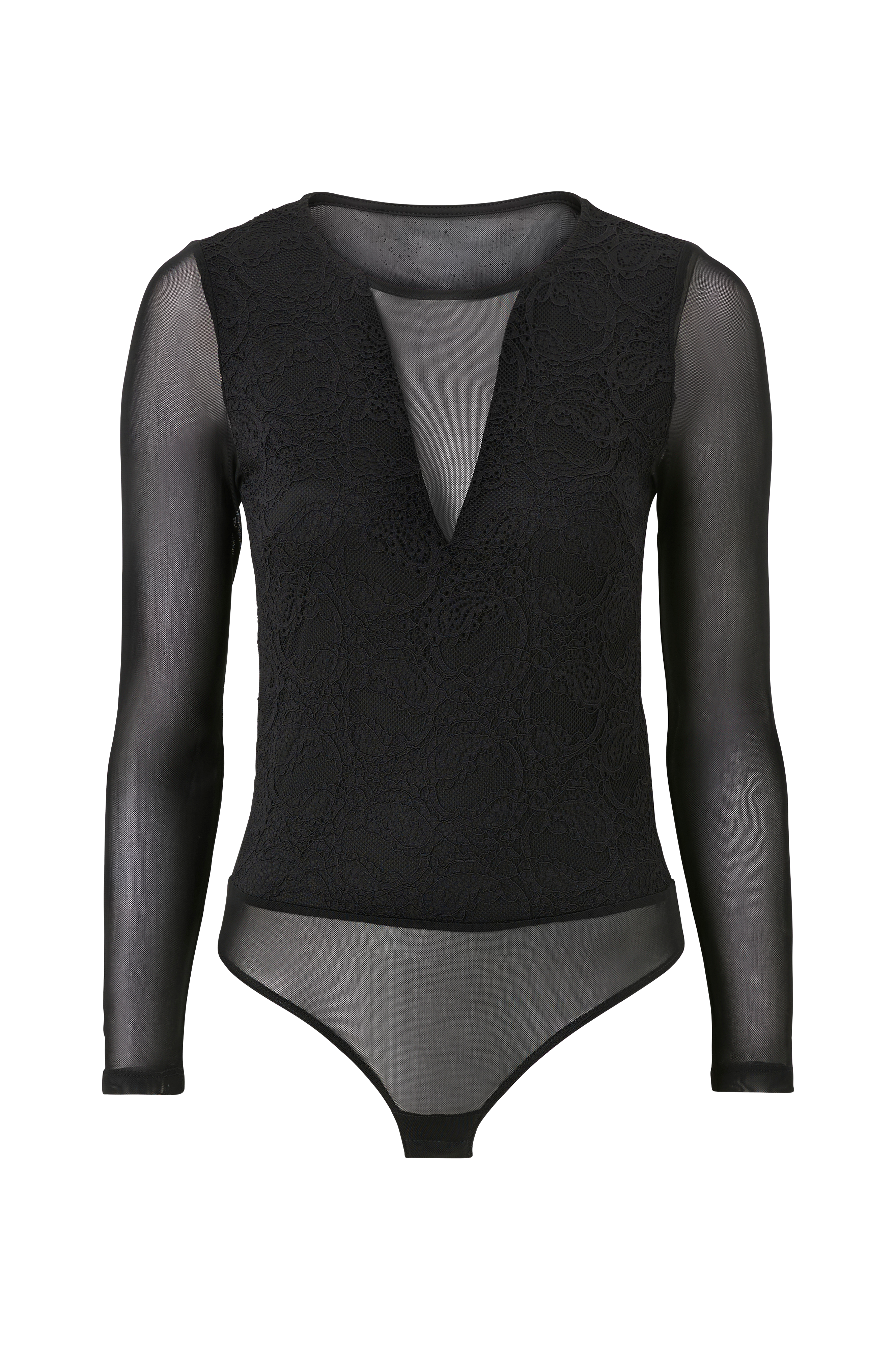 • Bodyasu läpinäkyvästä verkkotrikoosta pitsillä edessä• Stringimalli• Vuorattu haara neppareilla