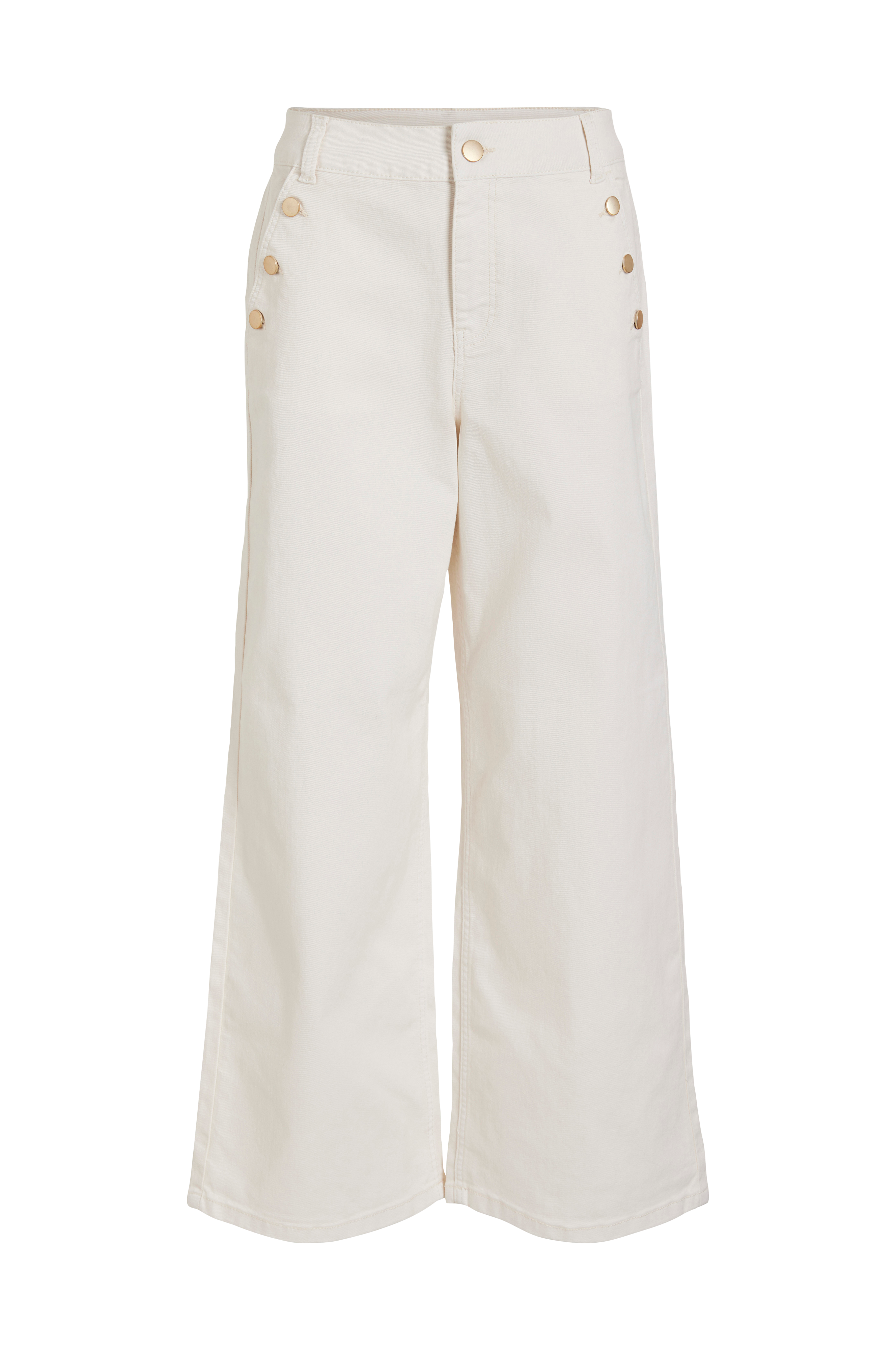 • Korkea vyötärö• Leveät jalat• 7/8-pituus• Taskut kullanvärisillä napeilla edessä• Valetaskut takaosa• Vetoketjusepalus• Lahkeen sisäpituus: 70 cm koossa 36