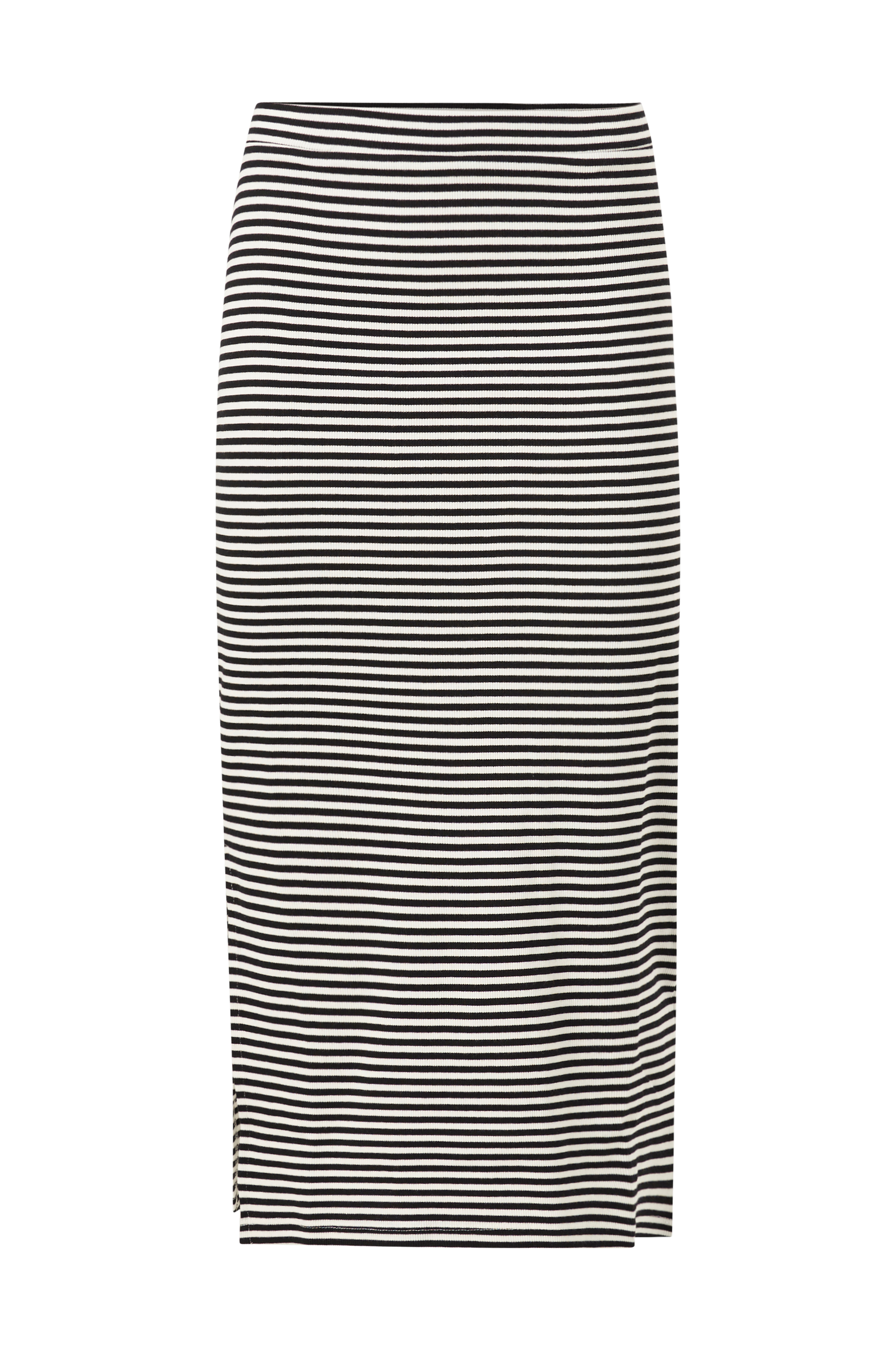 • Ihonmyötäinen, pohkeen puoliväliin ulottuva hame ribatusta puuvillajersey-kankaasta
