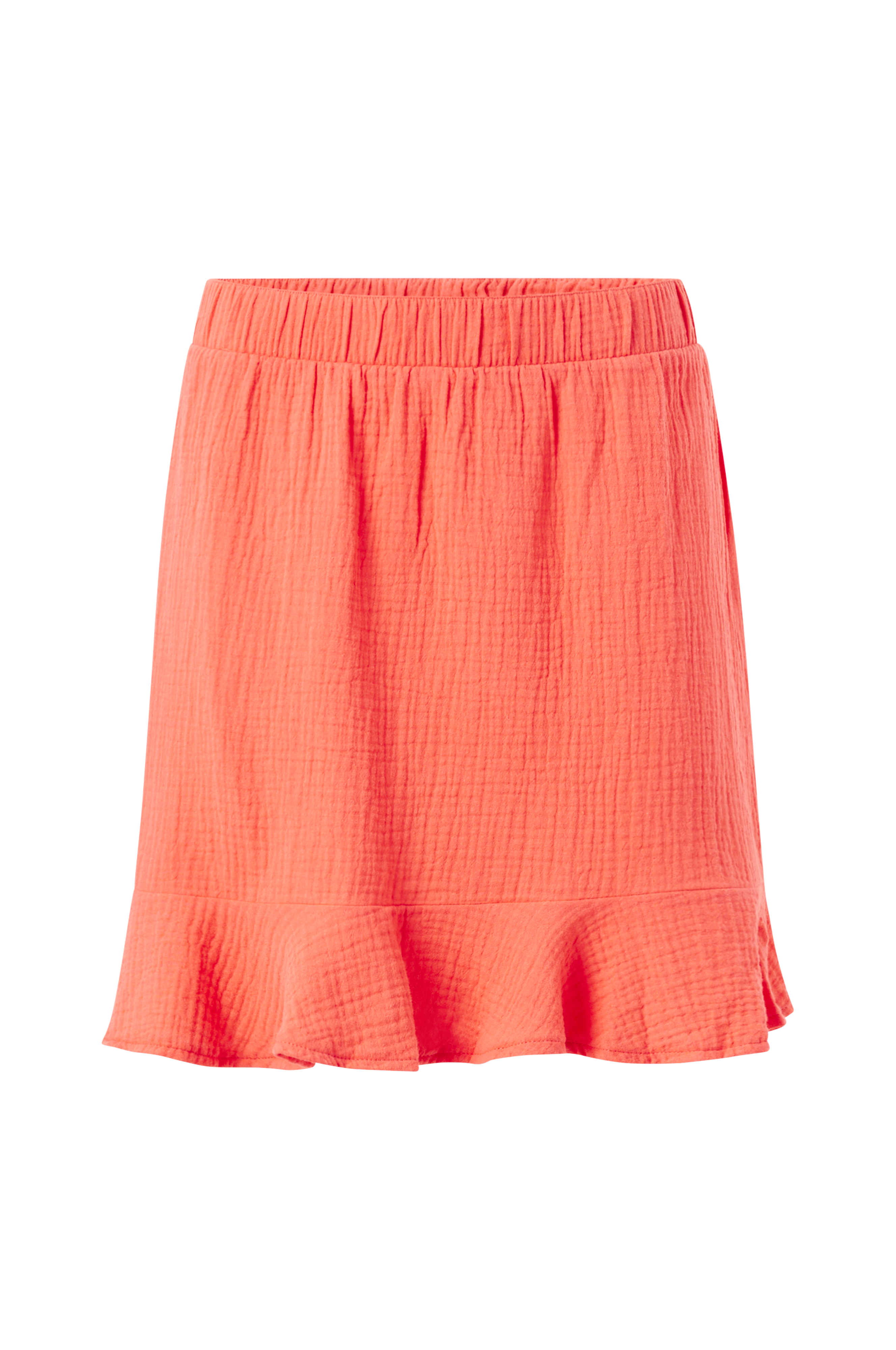 Korallinvärinen hame. Hyvä koko 34. Hieman lyhyempi pituudeltaan. Tämä päättyy hieman polvien yläpuolelle.