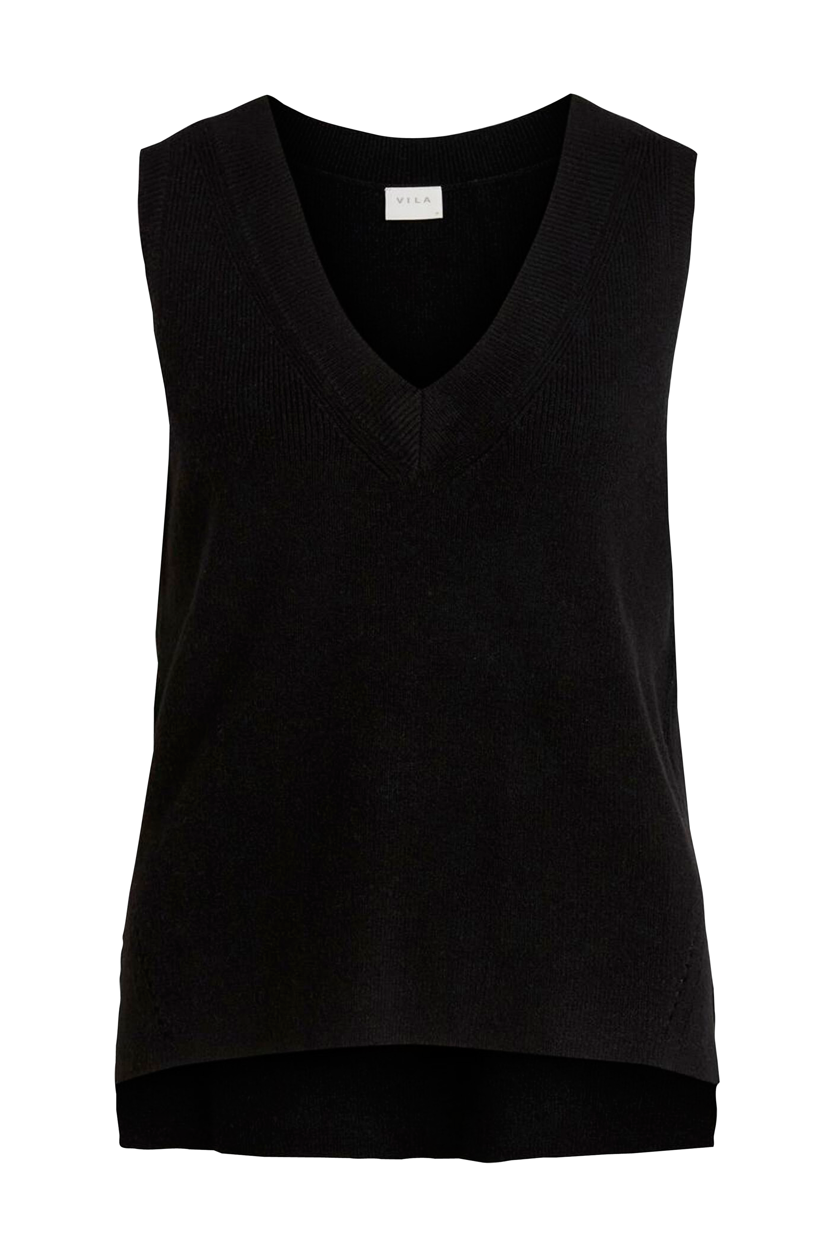 Sileä neuleliivi, jossa hieman kuvioneuletta helmassa edessä. V-pääntie, jossa joustinneulereunus. Joustinneuletta kädenteissä ja helmassa. Sivuhalkiot ja pidempi takakappale.
