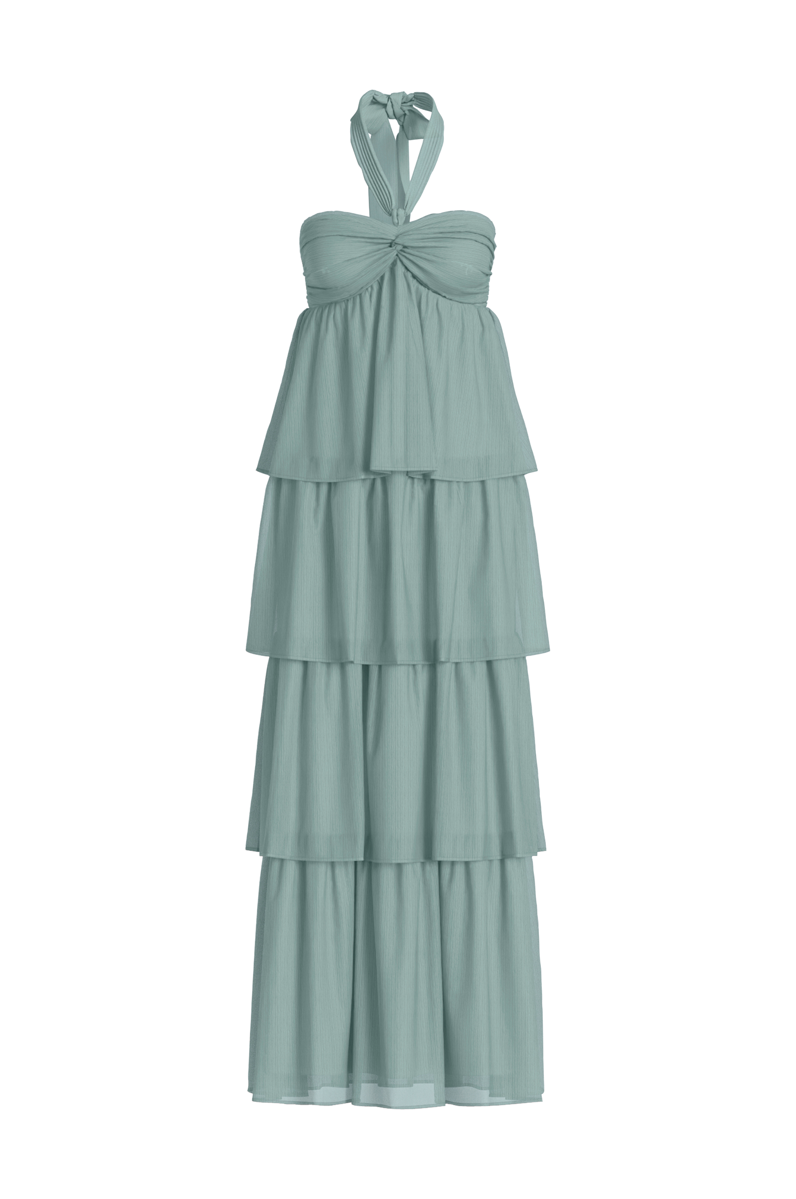 • Pitkä röyhelömekko sifongista• Halterneck-malli sidottavalla hihnalla kaulan ympärillä• Drapeeraus rintamuksessa• Rypytys selässä• Trikoovuori