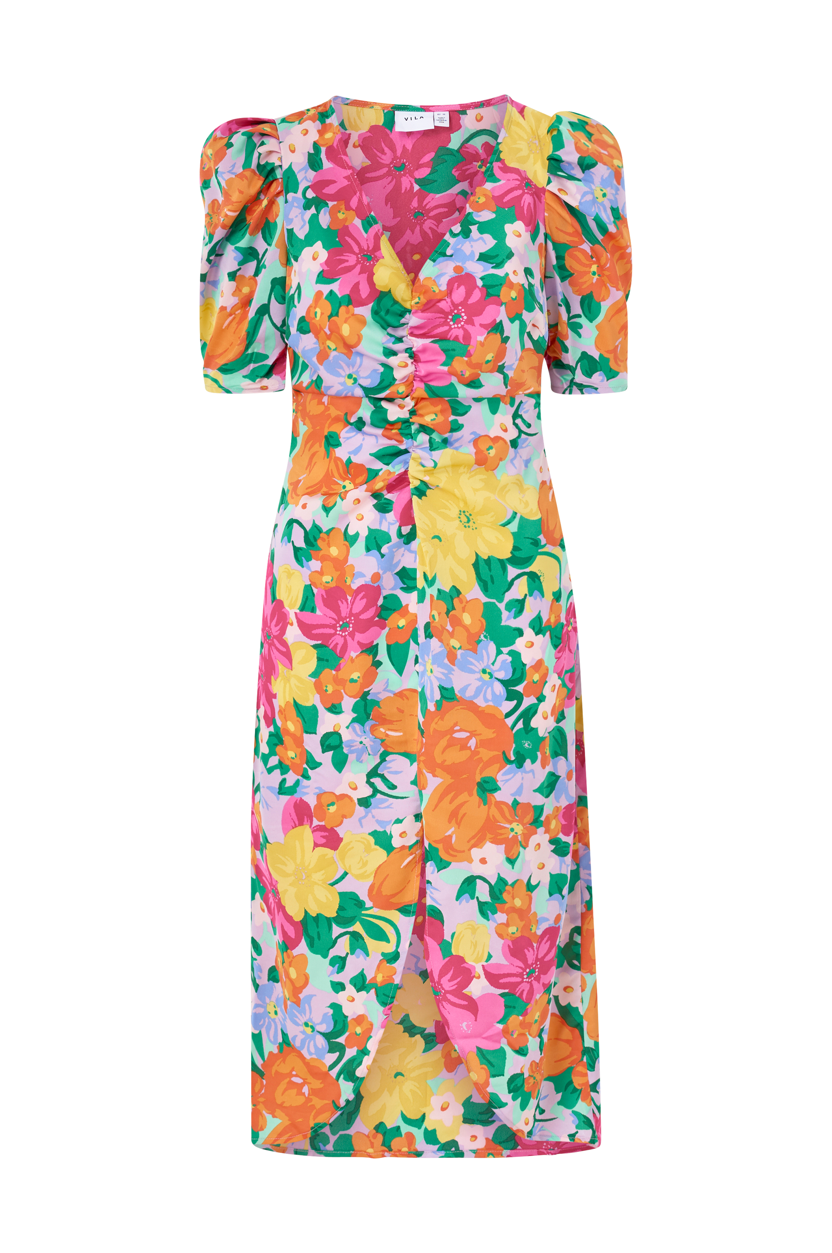 • Tyköistuva malli • V-muotoinen kaula • Drapeeraus rinnassa • Lyhyt bubble-hiha • Pyöristetty halkio alhaalla edessä • Pituus: 117 cm koossa 36 • Tuote sisältää kierrätettyä materiaalia, jonka käyttö vähentää jätteen määrää ja säästää luonnonvaroja.