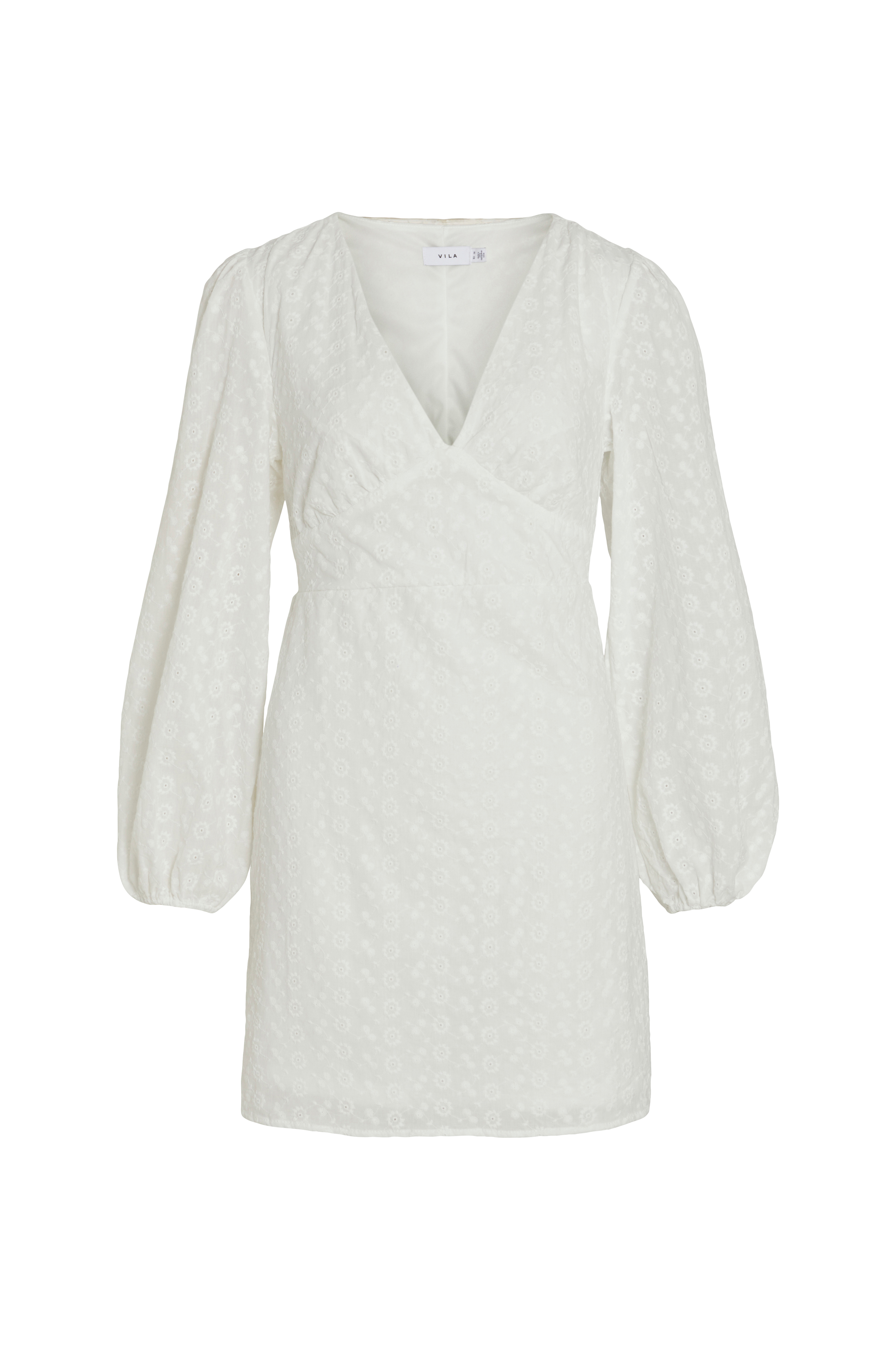 • Lyhyt, ihonmyötäinen mekko kirjaillulla reikäkuvioinnilla• V-kaula-aukko• Bubble-hihat joustavilla hihansuilla• Kuminauha vyötärön takaosassa• Trikoovuori• Pituus: 83 cm koossa 36