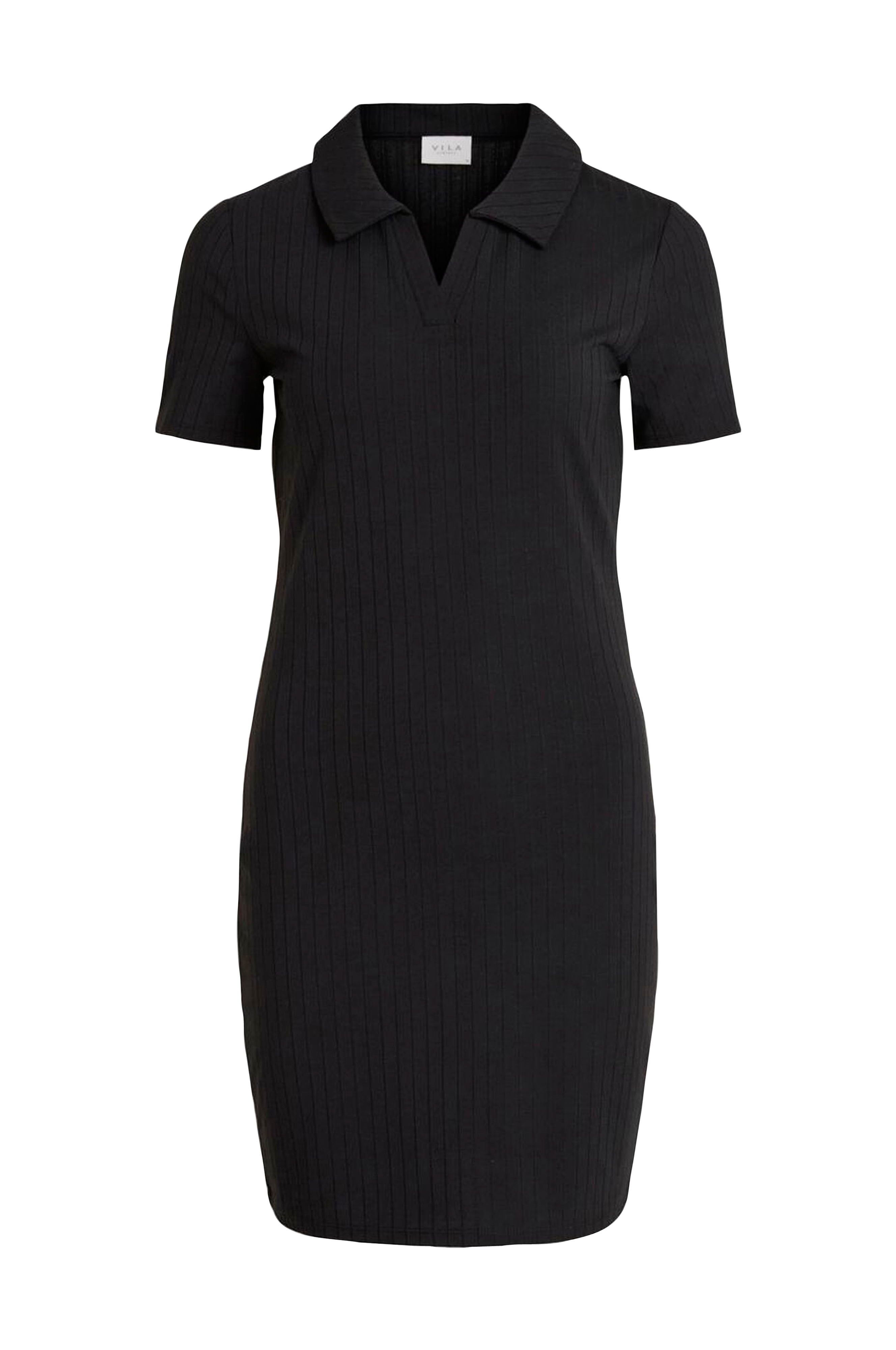 Vartalonmyötäinen malli jerseytä, jossa kapeat, neulotut struktuuriraidat. Lyhyet hihat, pieni kaulus ja halkio edessä pääntiessä. Pituus n. 91 cm koossa S.