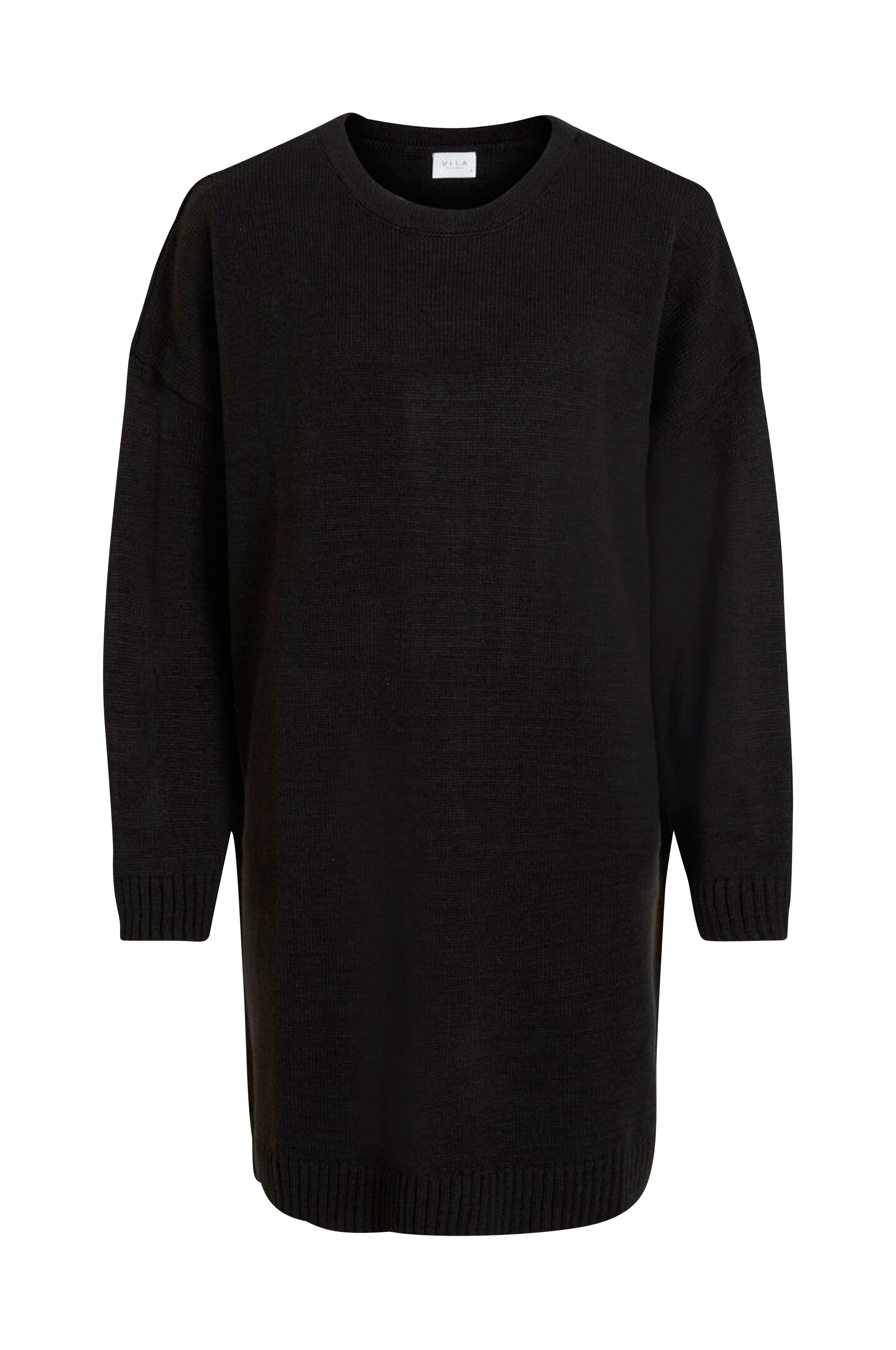 Vila viRuna L/S Knit Dress -mekko. Neulemalli, jossa madalletut olkapäät ja joustinneulereuna helmassa, hihansuissa ja pääntiessä. Väljä istuvuus. Pituus n. 93 cm koossa S.